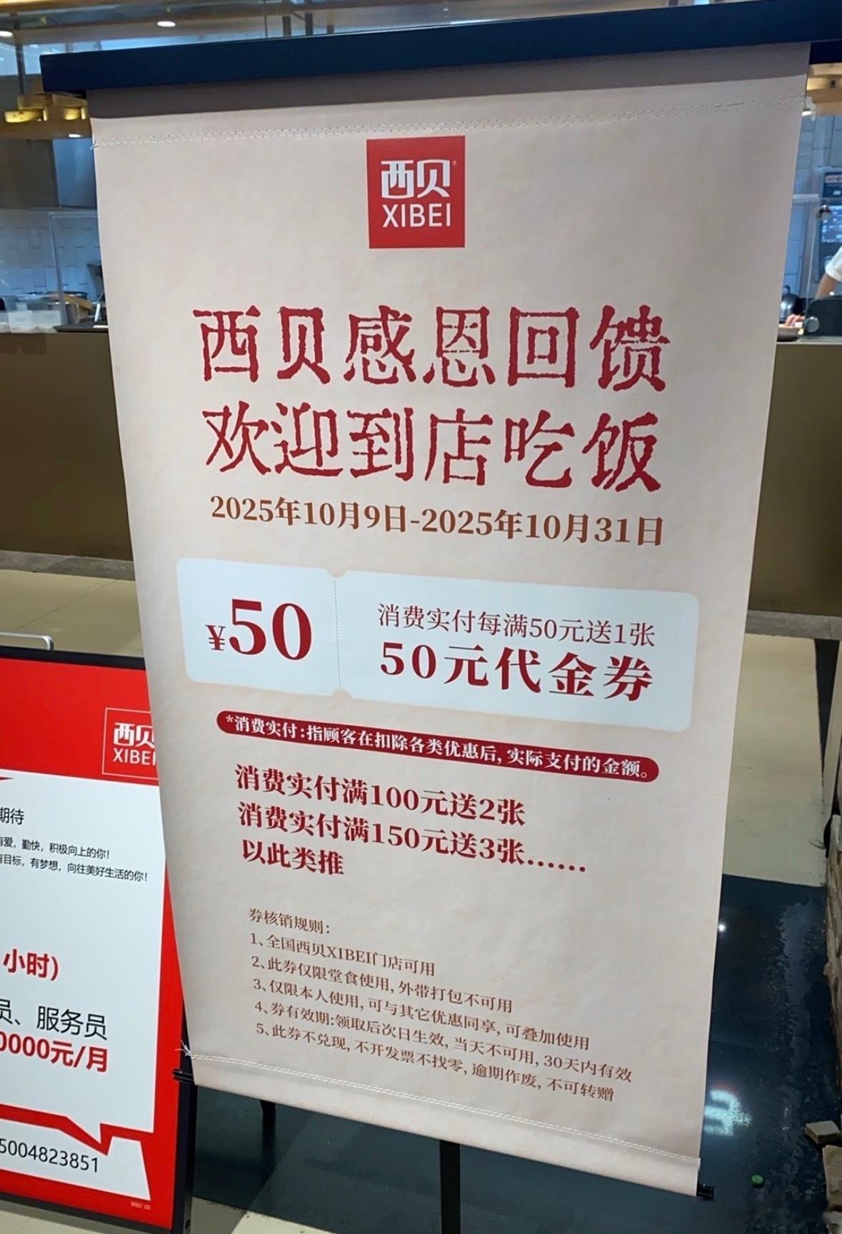 然后西贝又开始送50元的代金劵了,看来这一招确实好用西贝闭麦后又开始排队了
