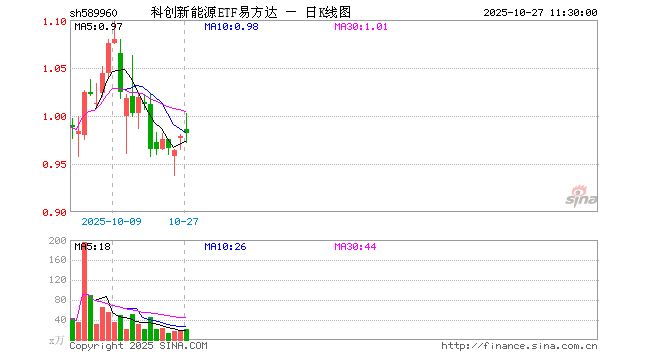 科创新能源ETF易方达(589960)业绩比较基准为上证科创板新能源指数收益率,管理人为易方达基金管理有限公司,基金经理为李博扬,成立(2025-09-10)以来回报为-1.89%,近一个月回报为-4.42%。