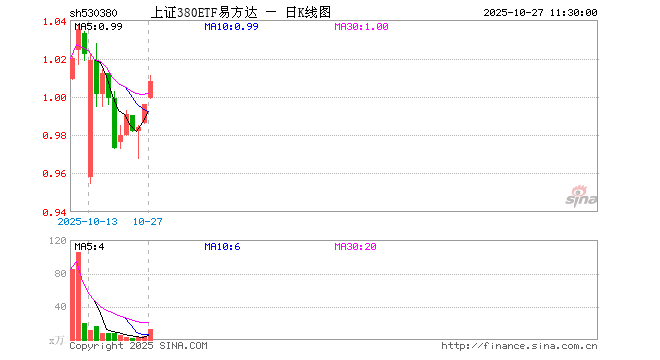 上证380ETF易方达(530380)业绩比较基准为上证380指数收益率,管理人为易方达基金管理有限公司,基金经理为张泽峰,成立(2025-09-22)以来回报为-0.20%,近一个月回报为-0.38%。
