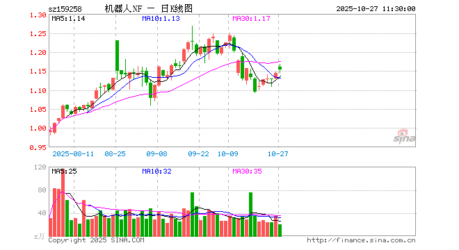 10月27日,截止午间收盘,机器人ETF南方(159258)涨0.79%,报1.154元,成交额2305.19万元。机器人ETF南方(159258)重仓股方面,科大讯飞截止午盘涨0.51%,汇川技术跌0.65%,石头科技跌0.21%,大华股份涨7.57%,中控技术跌1.37%,双环传动涨0.42%,大族激光涨2.55%,机器人跌0.86%,巨轮智能涨3.21%,拓邦股份涨0.49%。