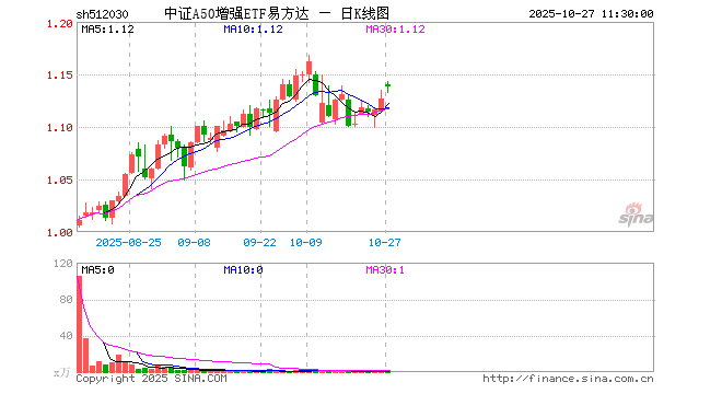 中证A50增强ETF易方达(512030)业绩比较基准为中证A50指数收益率,管理人为易方达基金管理有限公司,基金经理为郭杰,成立(2025-07-28)以来回报为12.95%,近一个月回报为-0.19%。