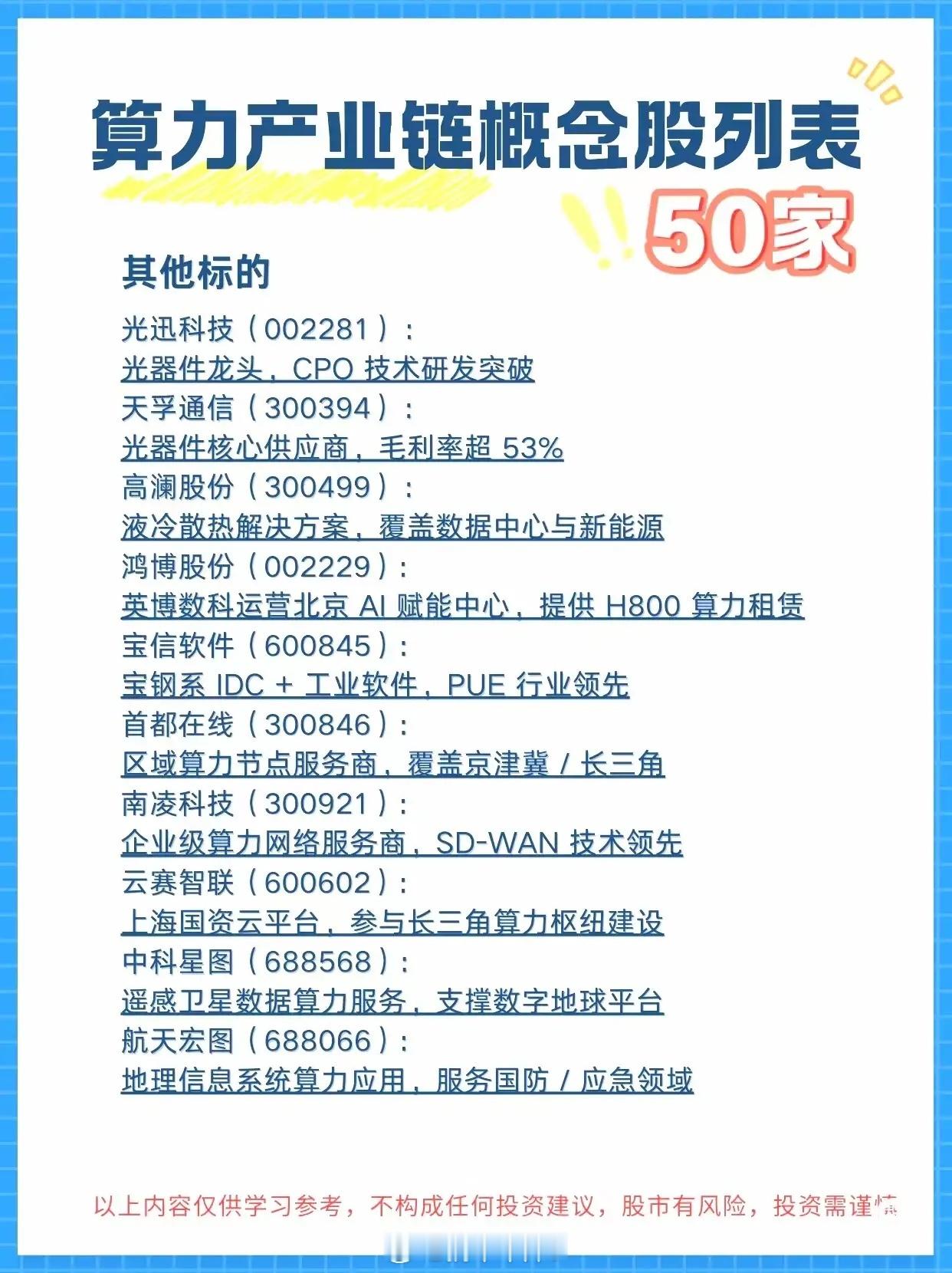 题材概念驱动事件:10月24日科技部重磅发力,人工智能+行动全面实施,算力、算法、数据成数字经济核心引擎。 2025全球计算大会年度大会将于11月7日-8日在深圳举办,主题为“筑新基・赋新能,拥抱AI新机遇”。国产算力产业链50强龙头名单来了,有没有你的菜?