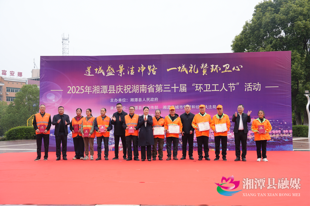 湘潭县融媒体中心10月27日讯(记者马婧何佳达见习记者彭翊程)10月26日上午,湘潭县以“莲城盛景洁净路一城礼赞环卫心”为主题,举办湖南省第三十届“环卫工人节”庆祝活动。县领导文香军、张立忠、肖小年、蔡剑锋出席活动。
