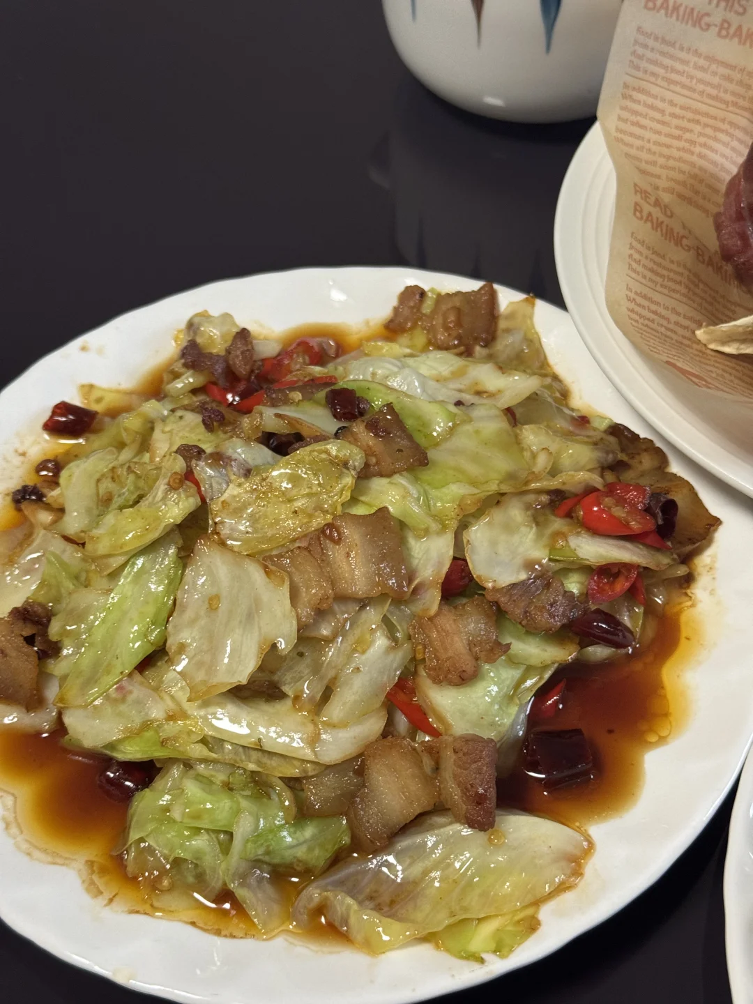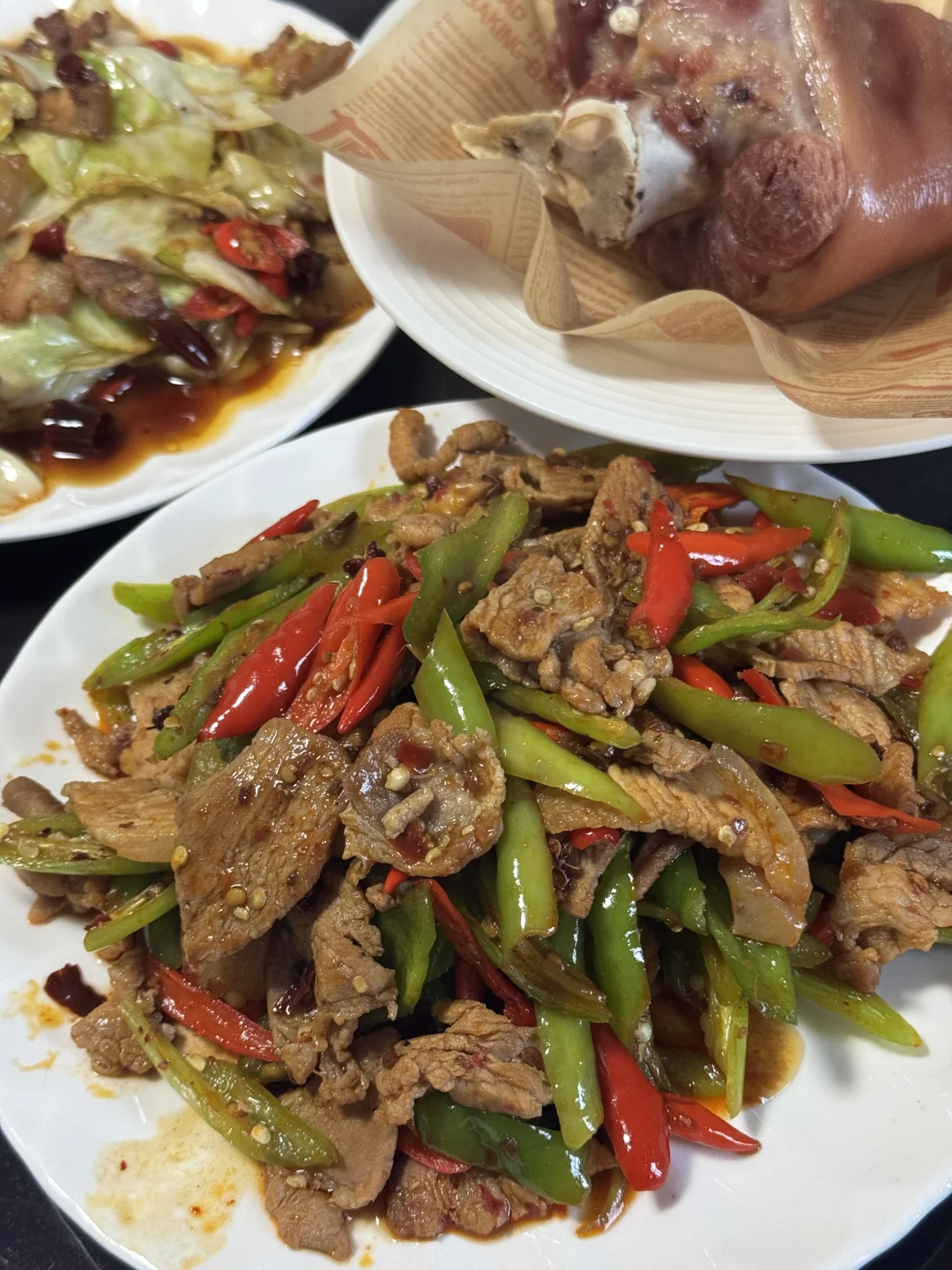 只有一天的周末很不爽[可怜R] 今天午餐:干锅手撕包菜,辣椒炒肉,烤咸猪手,风鸡皮肚三鲜锅