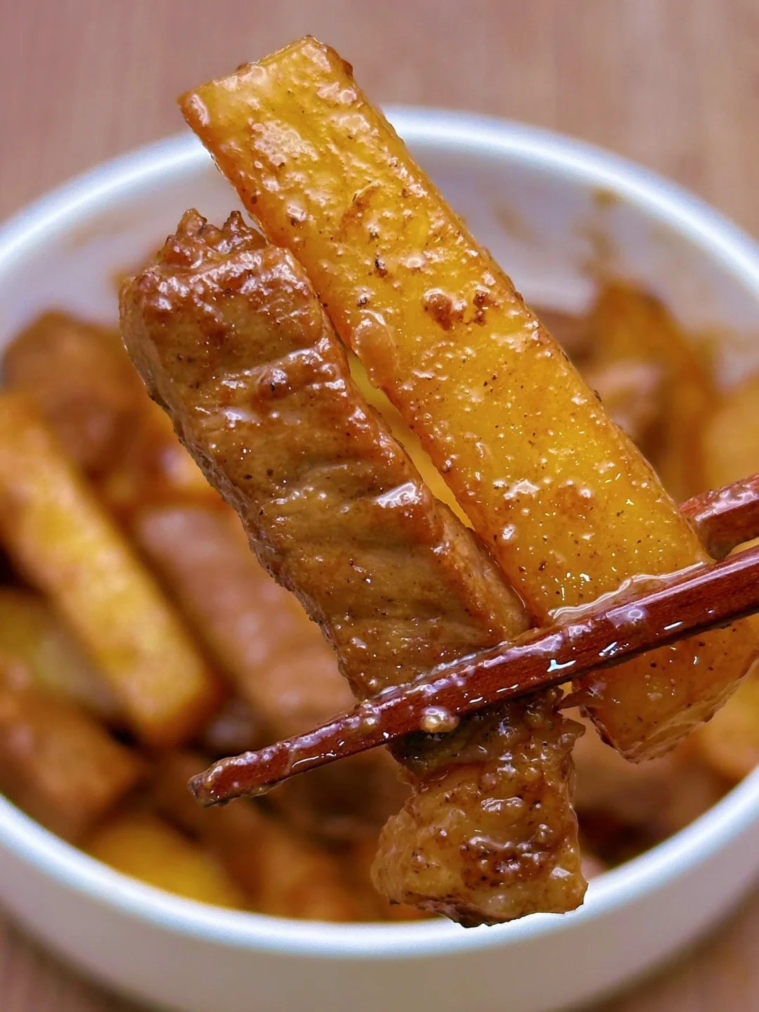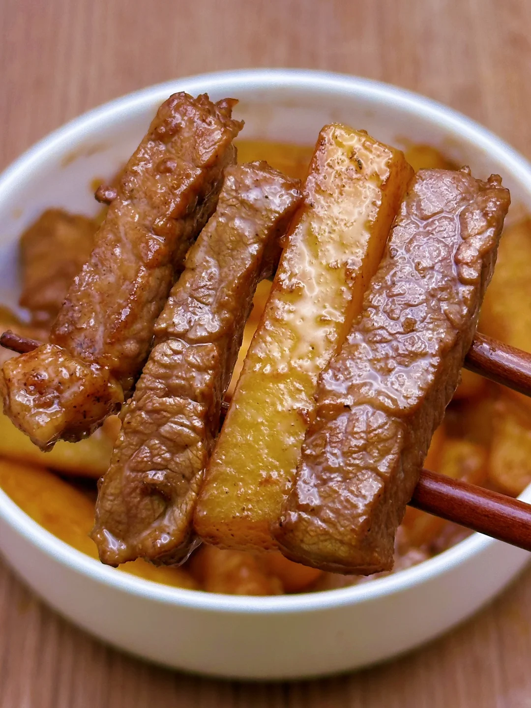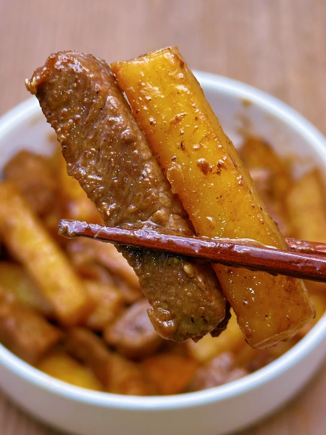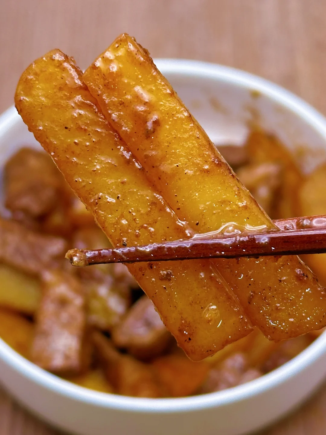 今天给姐妹们分享低卡高蛋白的牛排土豆煎锅,牛排鲜嫩多汁,越吃越香,土豆外焦里糯,真的巨巨巨好吃,而且还解馋,好吃不胖,做法简单,减脂期的姐妹们也可以放心吃,姐妹们赶紧试试吧~ 🥗食材:牛排、土豆 🥘做法:如图所示~ ✅牛排自然解冻后用厨房纸吸干水分,切成条状,加入1勺生抽➕半勺蚝油➕1勺料酒➕1勺淀粉➕1勺橄榄油➕少许黑胡椒碎抓匀腌制15分钟 1️⃣热锅冷油放入腌制好的牛肉条,煎至变色盛出备用 2️⃣锅中留底油,放入切条的土豆,煎至金黄,加1生抽倒入牛肉条➕半勺蚝油➕少许黑胡椒粉,加入香菜碎,翻炒均匀,即可开吃 减脂期也要对自己好好的!!吃肉肉不怕胖!