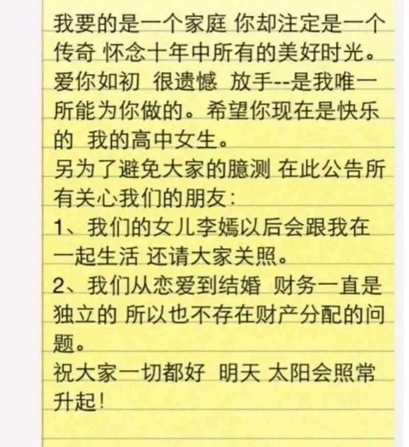 更反常的是声明里的 “免责声明”:特意强调 “没有小三没有原则性问题”,反倒让人想起他与王菲离婚时的同款话术,当年也说 “性格不合”,转头就爆出财务分歧。