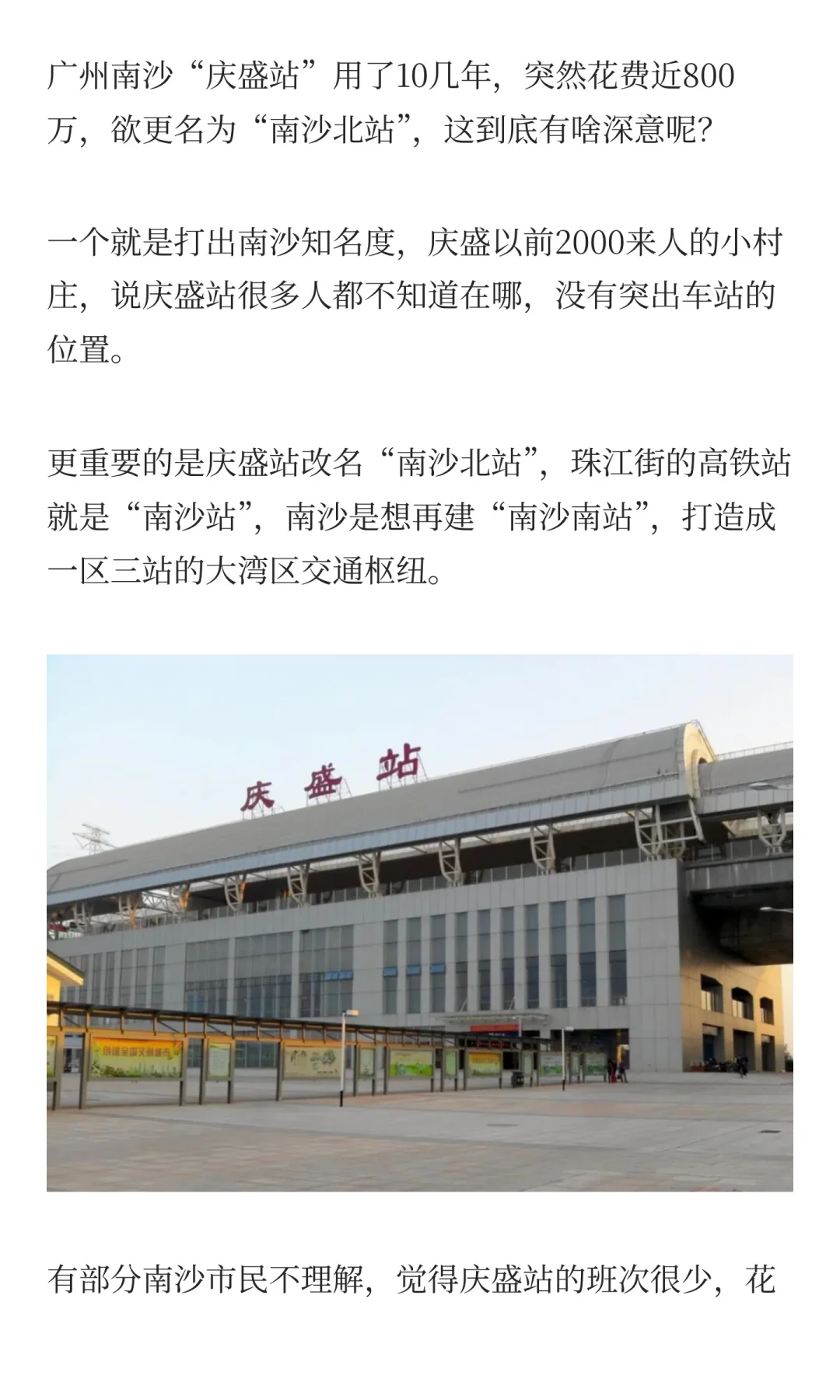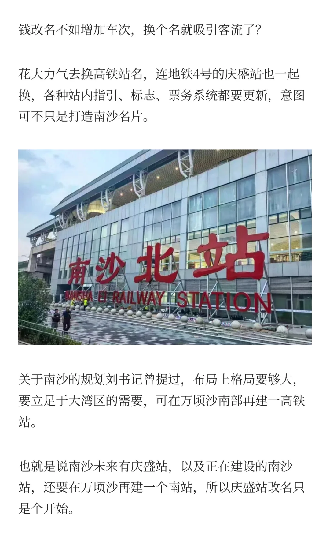 庆盛站更名南沙北站,南沙欲打造3大高铁站
