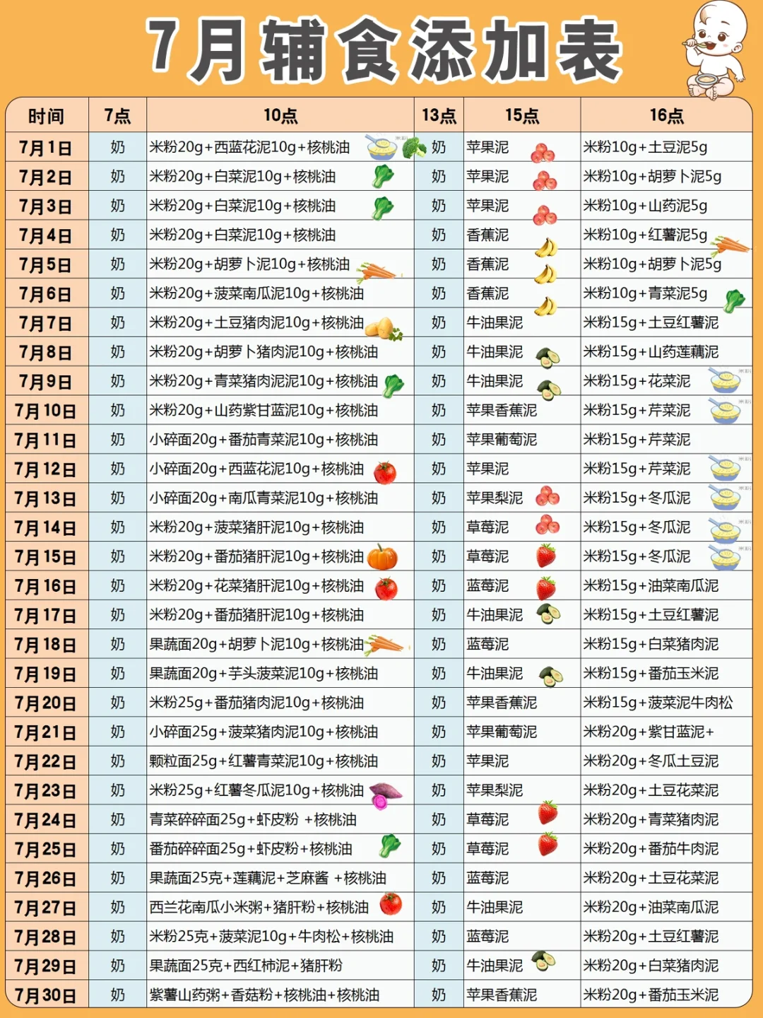 宝宝6个月以后就要添加辅食了,到底每天吃什么?怎么做?今天给大家分享下保姆级6-7月宝宝辅食表,每天照着做,新手妈妈不用愁啦~