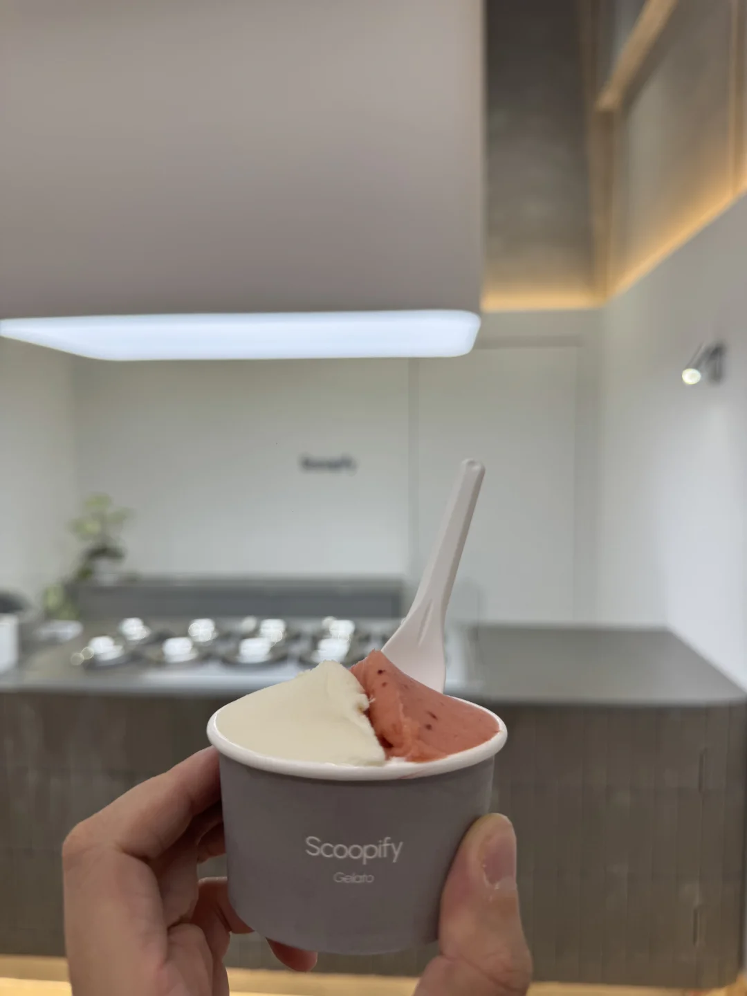 - 松弛感精髓:特别的柜台,木质吧台,开放式操作台看主理人现挖冰淇淋球