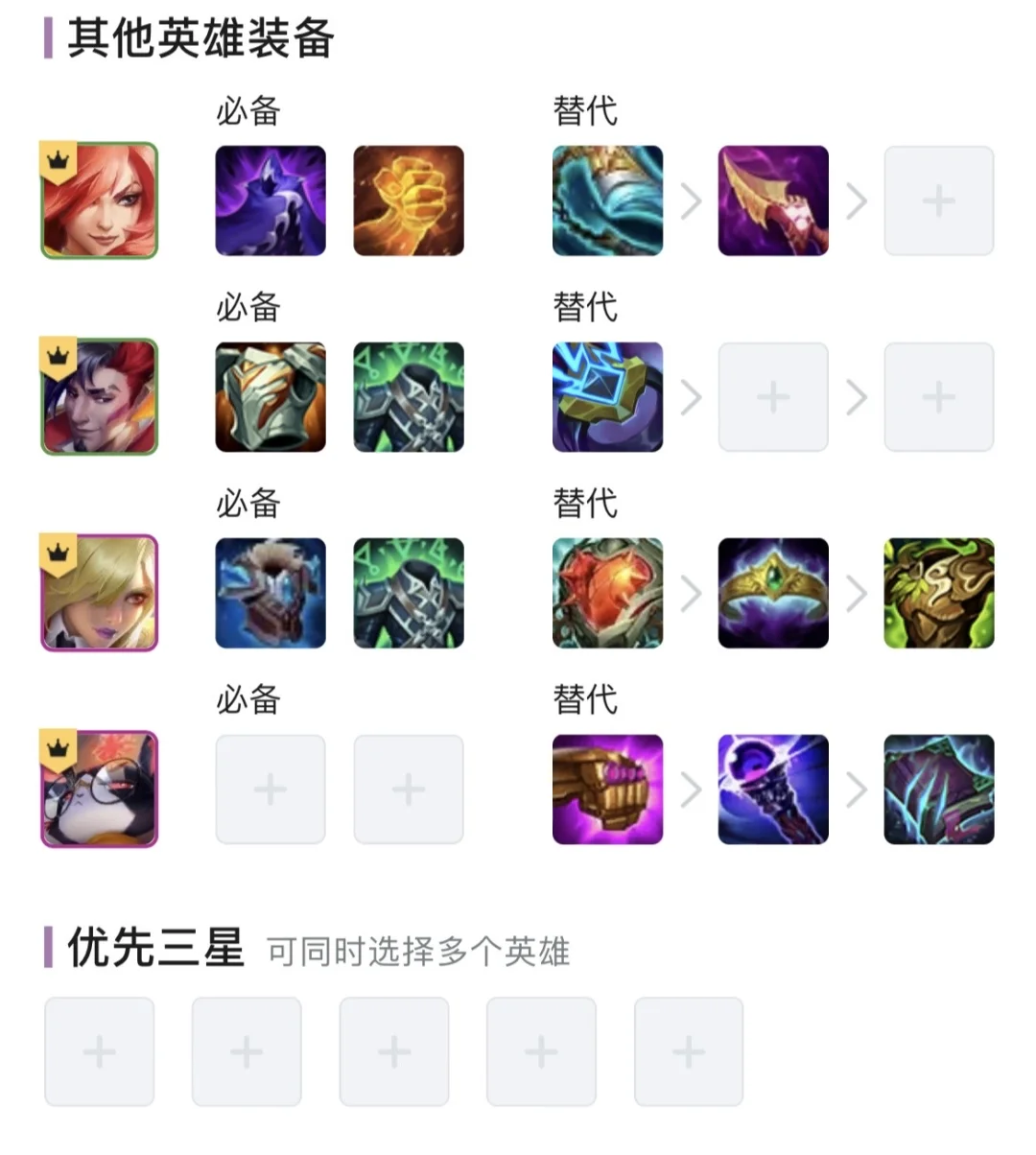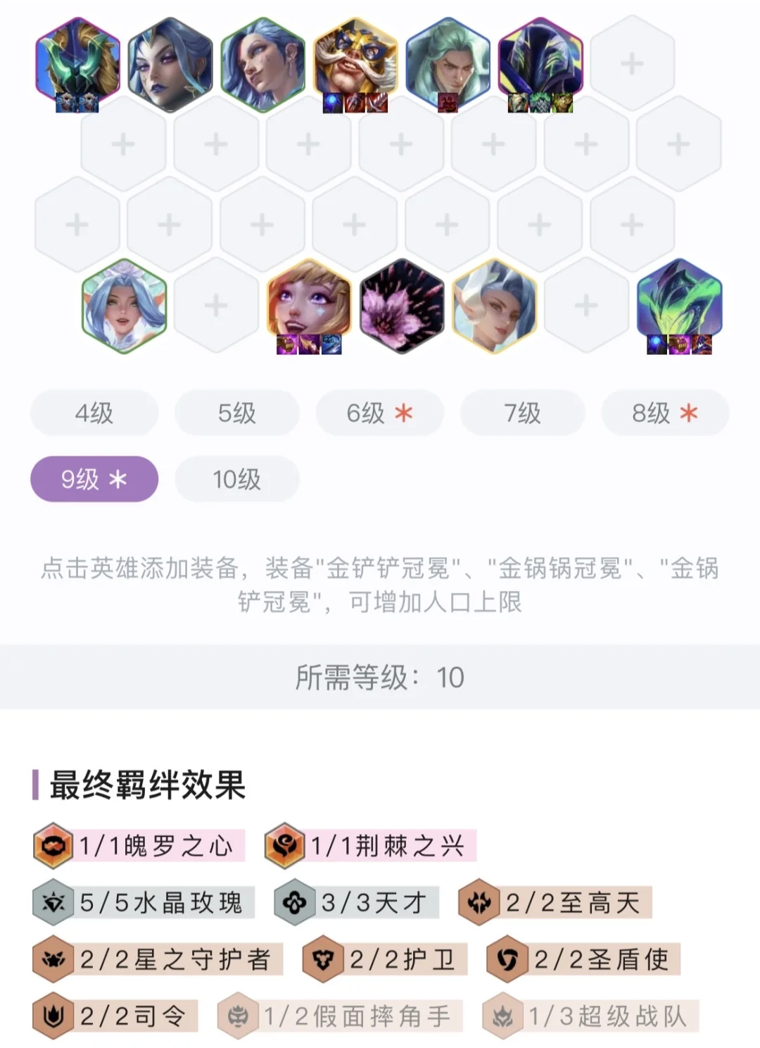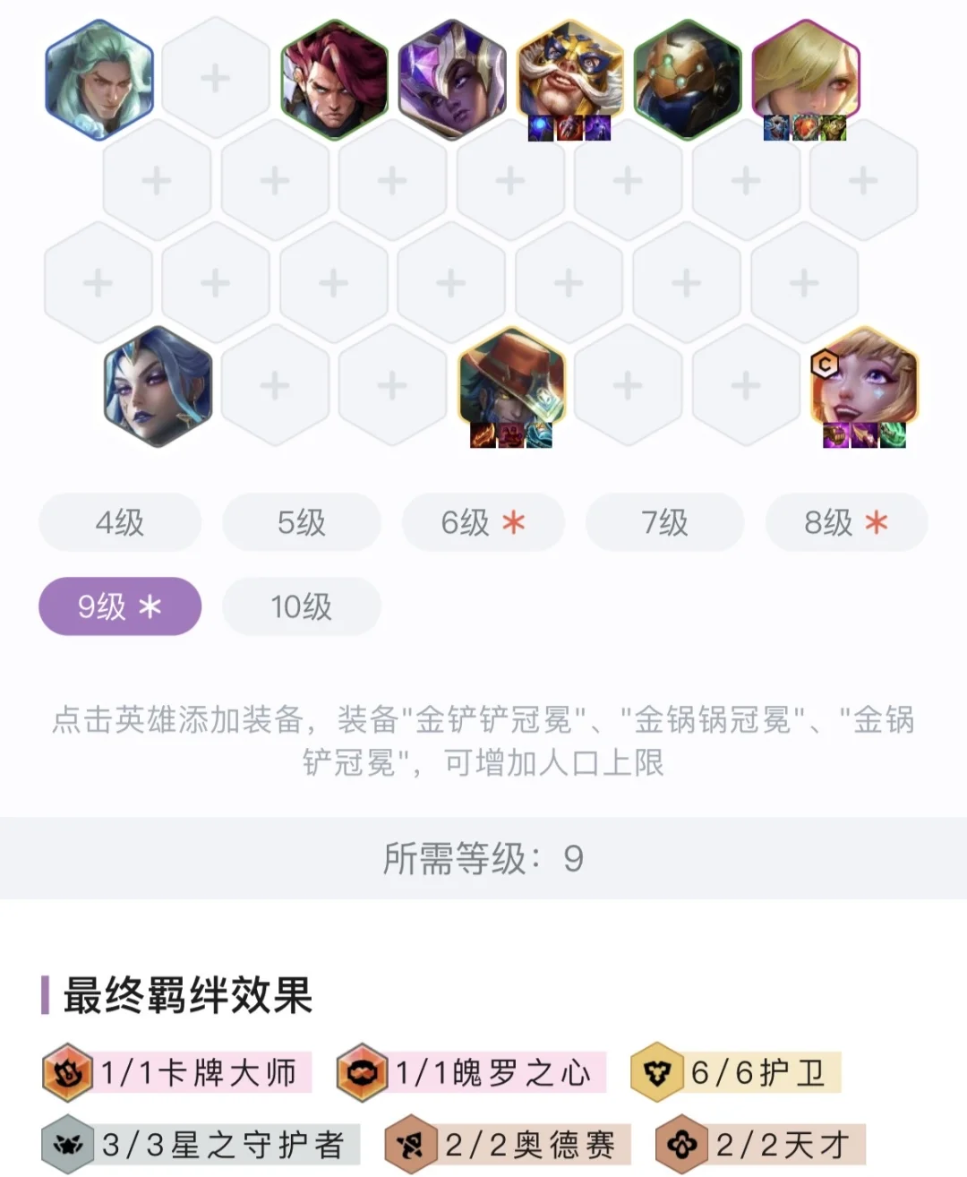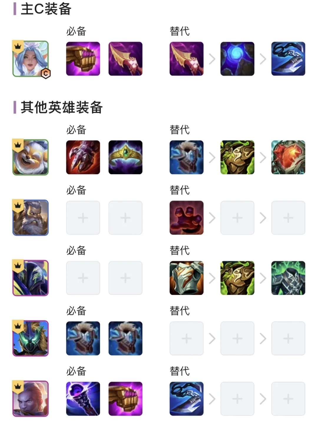 当前版本能玩的阵容很多,包括特殊玩法:缥缈肾、凯南/盖伦/蒙多/蔚/妮蔻的英雄强化,以及盖伦、大嘴、阿卡丽的特殊神器玩法,还有叠血盖伦这类特殊机制玩法,算下来20套往上只多不少。 但普通玩家没必要花太多精力全搞明白,选择简单公式或许才是“聪明”的玩法。 老手风女技巧点 • 眼观二费挚友,卡特、蒙多、蔚、肾均可,四阶段互清卡池易追三星。 • 老手果子四阶段概率提升,不上司令概率也增加,开局有概率出但较低。 • 装备:双纳什+法爆为最佳,其次蓝BUFF+法爆+纳什或巨杀;后期需投资瑞兹,用于应对大前排。 • 同行三星双纳什时,可转玩阿卡丽。 水晶蚂蚱技巧点 • 早点观察5水晶点数:出现两次6需追三星蚂蚱和乌鸦,无6则不追,点数9较差。 • 通常不挂艾希,蔚作为额外前排更实用;常规为八级抽牌,若有寻宝+水晶6点数,可七级抽牌。 • 装备:蚂蚱必带蓝BUFF+法爆,第三件优先帽子,其次巨杀,禁用红BUFF(蚂蚱攻速快有负收益);肉装需投资奎因。 • 后期芬妮强度高,9级二星蚂蚱+一星芬妮强度优于三星蚂蚱;阵容本质为九五,杰拉、布隆、芬妮为优质卡,优先挂司令,七水晶纯是玩尬的(除非有两个水晶转职)。 • 有毒陷阱四阶段刷出概率高,不开天才羁绊去刷,几乎必出。 9000卡特技巧点 • 仅推荐9000果子,才具备吃鸡实力;最新站位如图,我八月份用过类似的,不是啥新东西了缺点也有,开门站位也可行,具体需根据对手站位调整。 • 新站位存在缺陷,对手若会针对站位,卡特易直接掉复活甲。 • 装备:卡特必做夜刃+正义,纳什和破法胜率几乎无差异,7学+3星卡特+3星洛情况下,胜率3.59与3.63,无需迷信纳什。 • 致胜关键:决赛圈非常依赖站位理解,易出现神经刀情况。 护卫九五芬妮技巧点 • 核心感受:魔术师双大招,类似S4重秘狐狸直接清屏 • 运营:前期必须连胜,最好10连胜;3-5拉7开三水晶吃层数,四阶段连败加注,可收250-400水晶奖励。 • 升9时机:优先5-1升9启动,抽牌、换装备、换果子;若贪心5-2启动易暴毙;若三阶段水晶层数吃满,且有经济海克斯,4-5上9抽牌也可行。 • 装备:果子优先给芬妮(需搭配魔术师),卡牌拿有毒陷阱;若有鬼书+电刀,也可给布隆找果子,推荐优先有毒陷阱(强度高)。