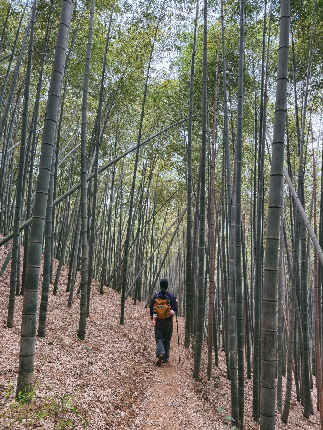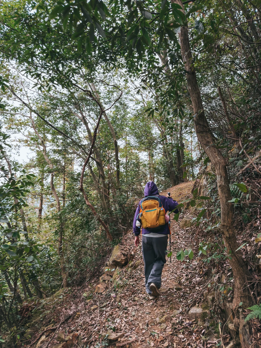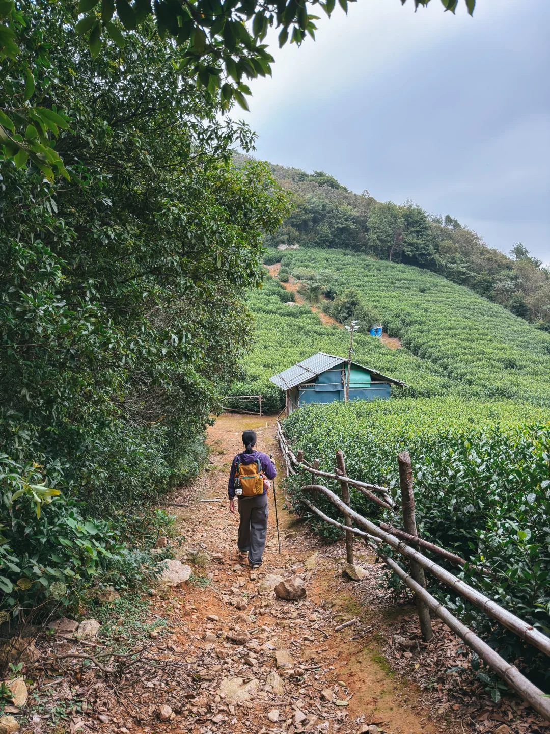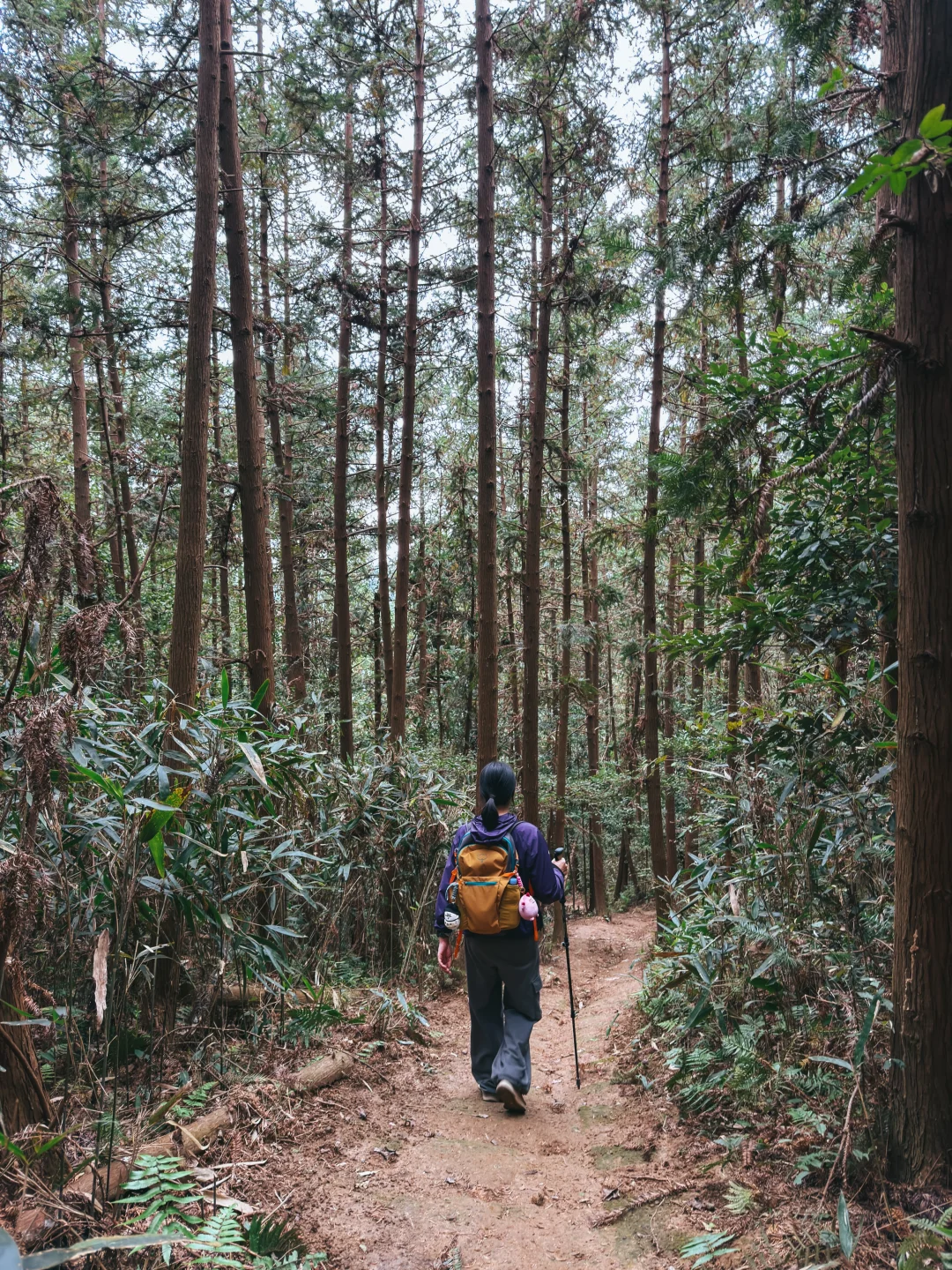 下山路段有陡坡和滑土,建议穿防滑的登山鞋,带上登山杖更安全
