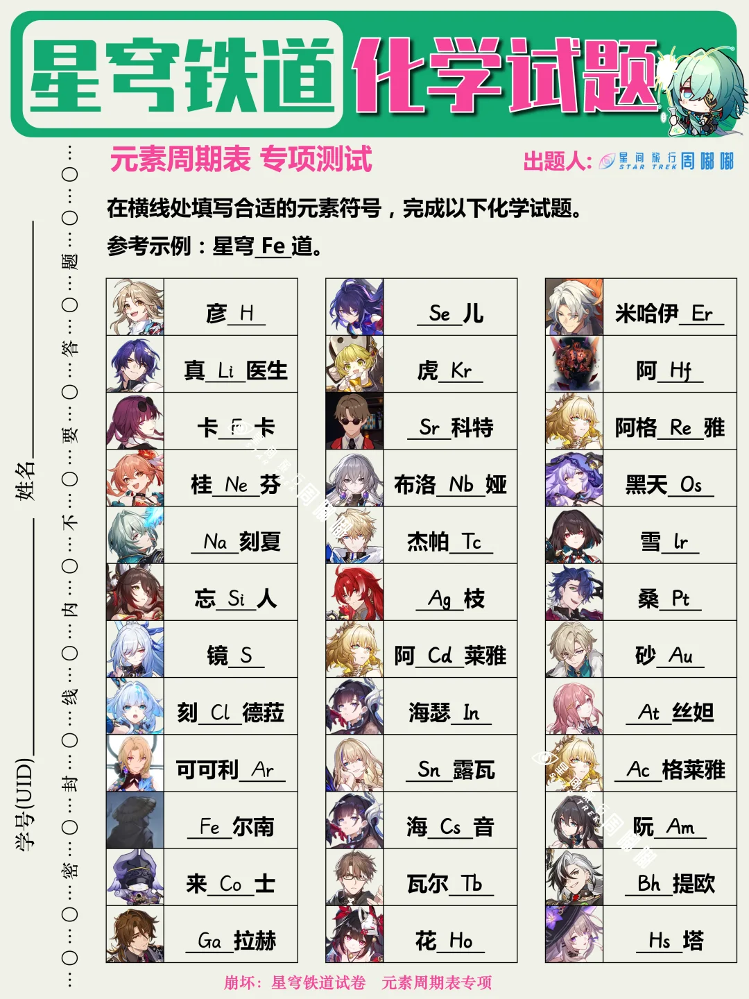快给你同学测, 能填对10个元素, 请原地加入【神悟树庭】! 图2图3可自印,可无料~ 需原图请[蹲R][蹲R] (图片比例竖向4:3,具体尺寸可自定)