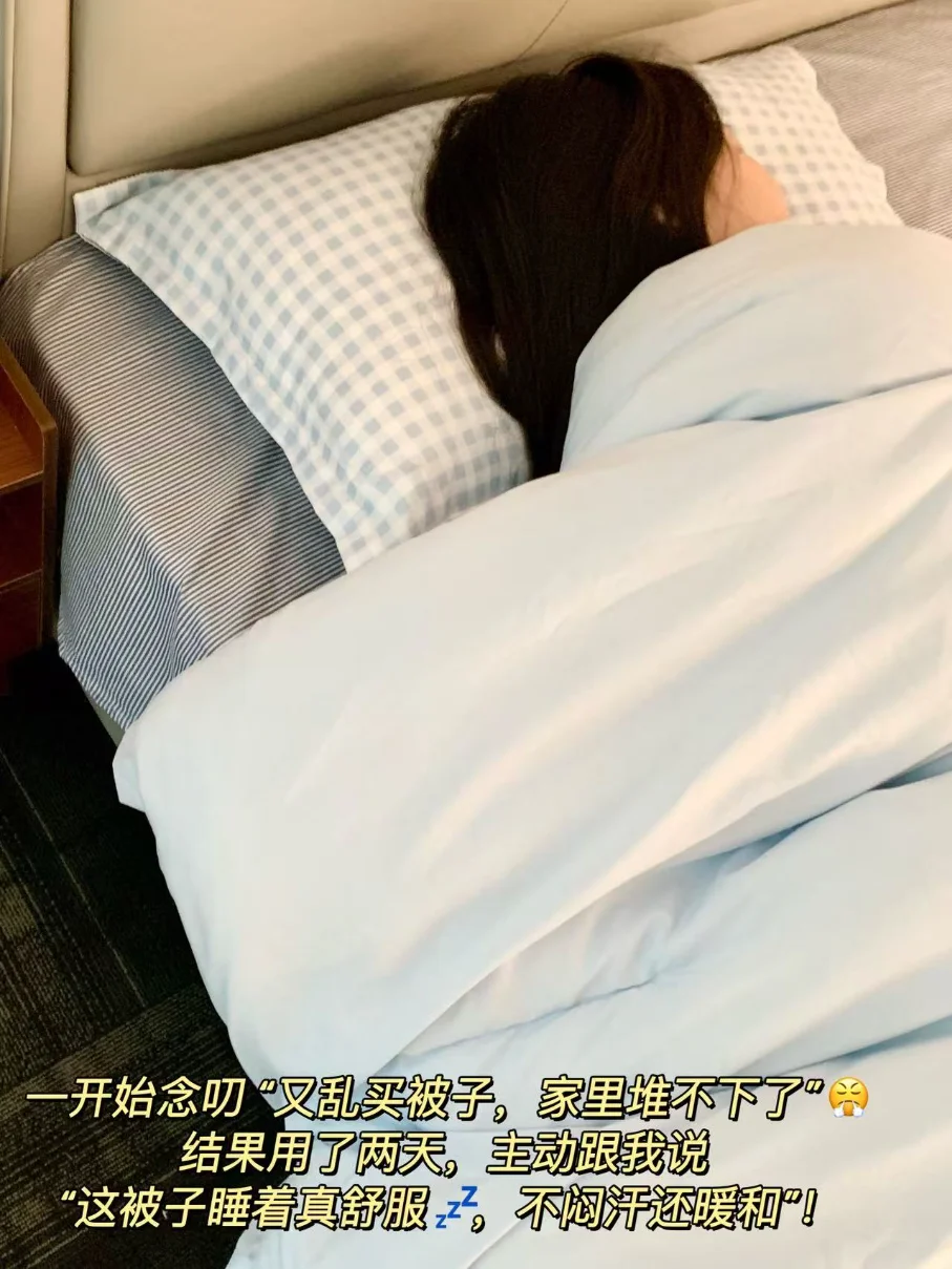 我妈一开始念叨 “又乱买被子,家里堆不下了”😤,结果用了两天,主动跟我说 “这被子睡着真舒服💤,不闷汗还暖和”!她睡眠浅,以前总嫌被子要么冷要么沉,能有这样的评价看来是真挺喜欢的~