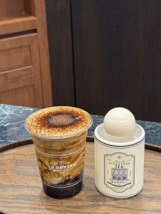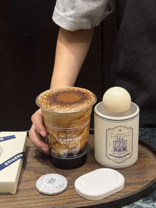 还有谁没喝过这一杯啊啊 黑武士熟成普洱薯丸好喝的我直点头 黑咖啡奶盖➕黑玉薯丸➕普洱茶➕牛奶 这组合到底谁想出来的,太妙了 一口醇香浓郁,软糯Q弹,层次丰富!!