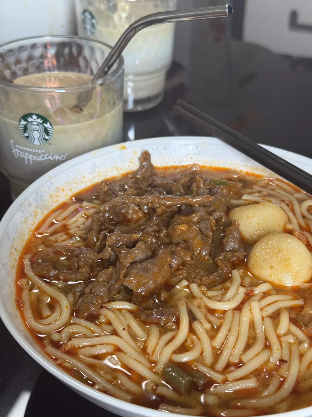爱上螺丝粉的早晨[偷笑R]今天是牛肉螺丝粉+鱼丸+炸蛋