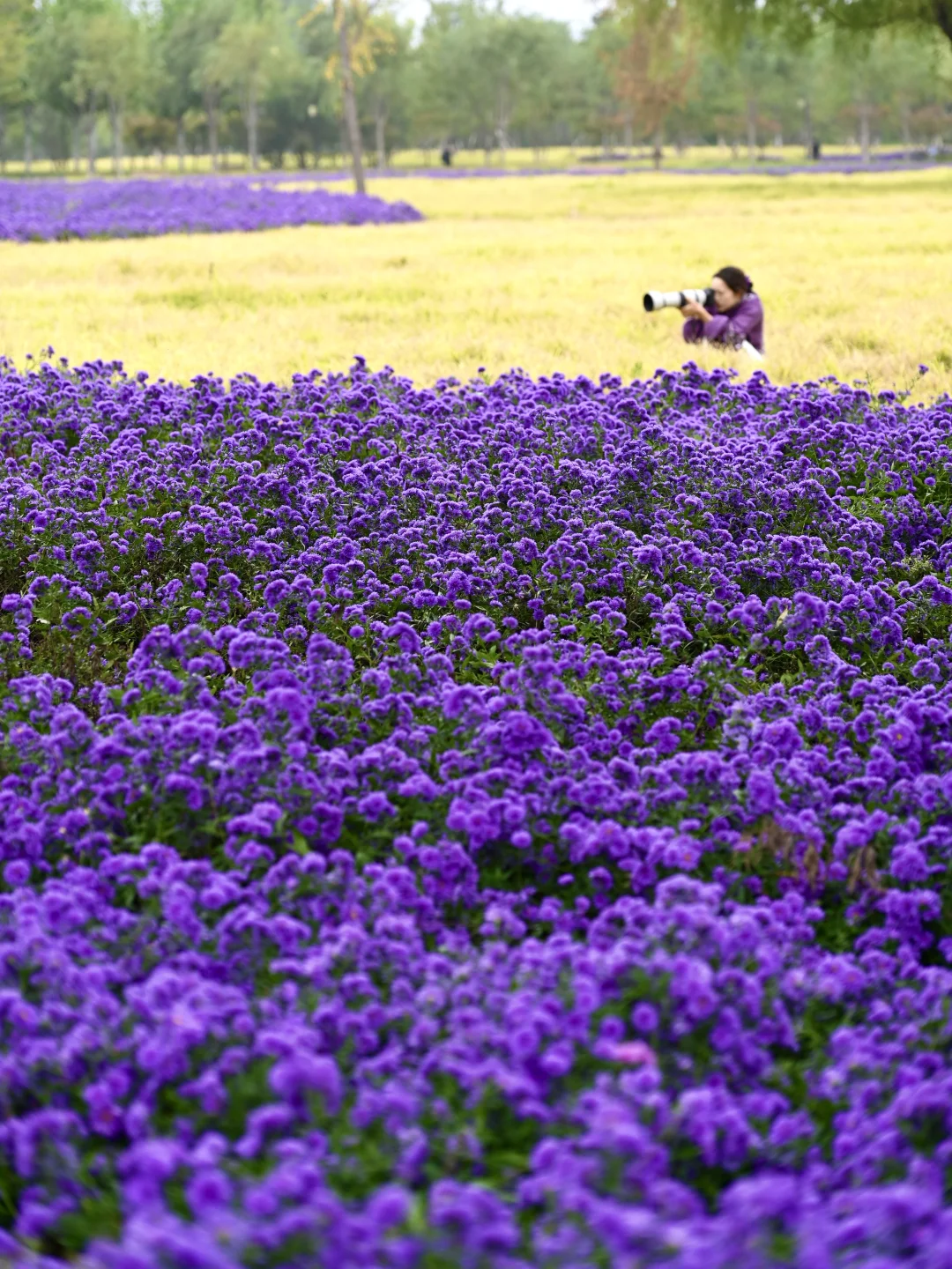 小众宝藏公园,海淀一亩园公园的花海又上线了,今年的紫菀花非常出彩。 👉普罗旺斯般紫色花田大景 👉西苑站地铁直达 👉人少,独享花海 📍海淀一亩园公园 🚇地铁4号线、16号线西苑站B2口 赏花路线图见P9 整片紫色花田超适合拍人像 配衬黄秋英,层叠颜色很好取景 早上人不多,照片均是早上8点左右拍,没有做消人处理,很多地方可以拍空镜。 📸2025.10.12早上8点