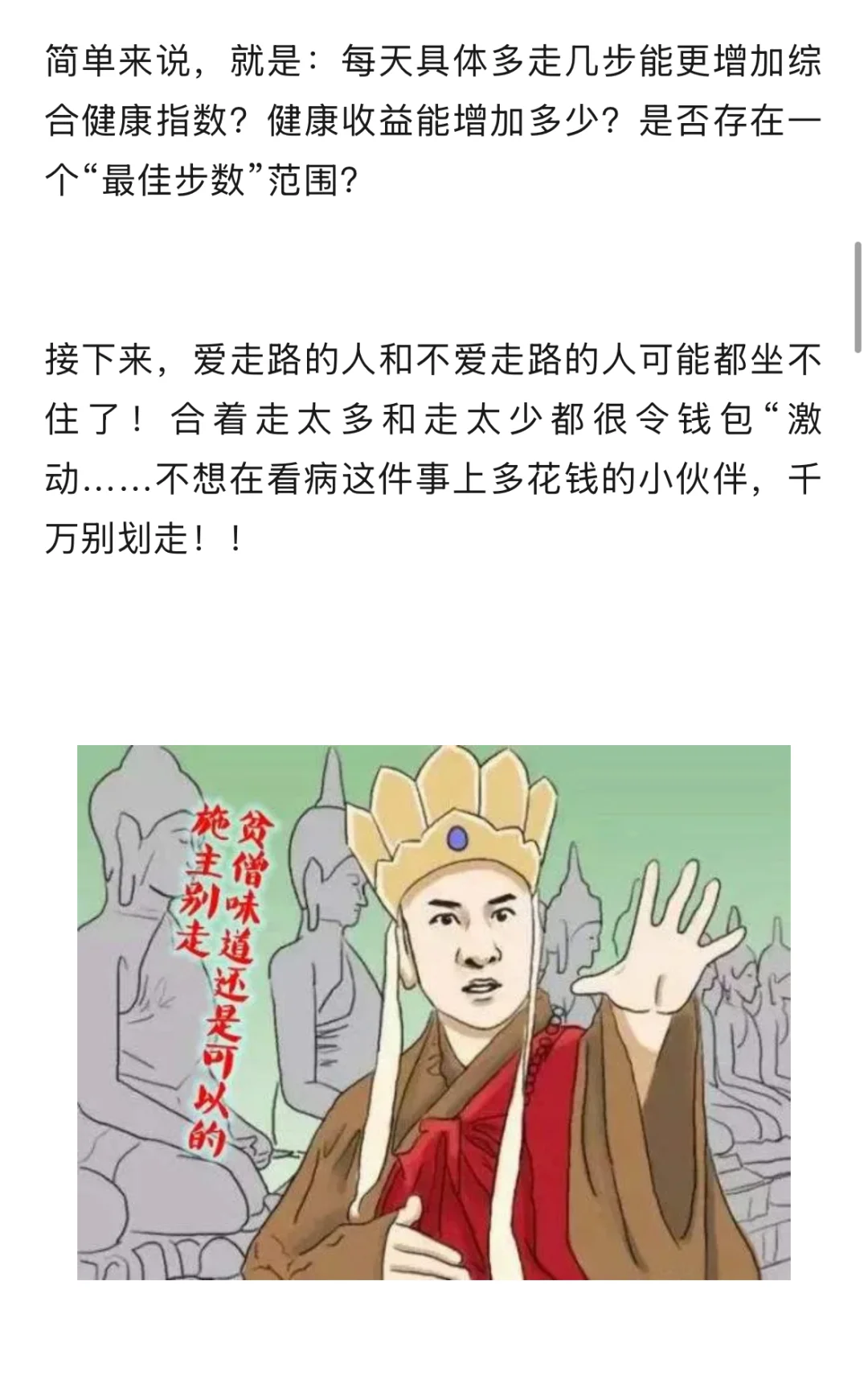 家人们!别再卷每天2万步了!🏃♀️🏃♂️ 科学家们最新研究发现,每日的“黄金步数”不仅能提升我们的健康指数,还能让钱包感受到压力!💰💰 无论是走路爱好者还是步行苦手,恐怕都要开始考虑调整自己的日常步数了!🤔 所以,不想在看病这件事上花费过多的小伙伴,赶紧行动起来吧!💪>>>>