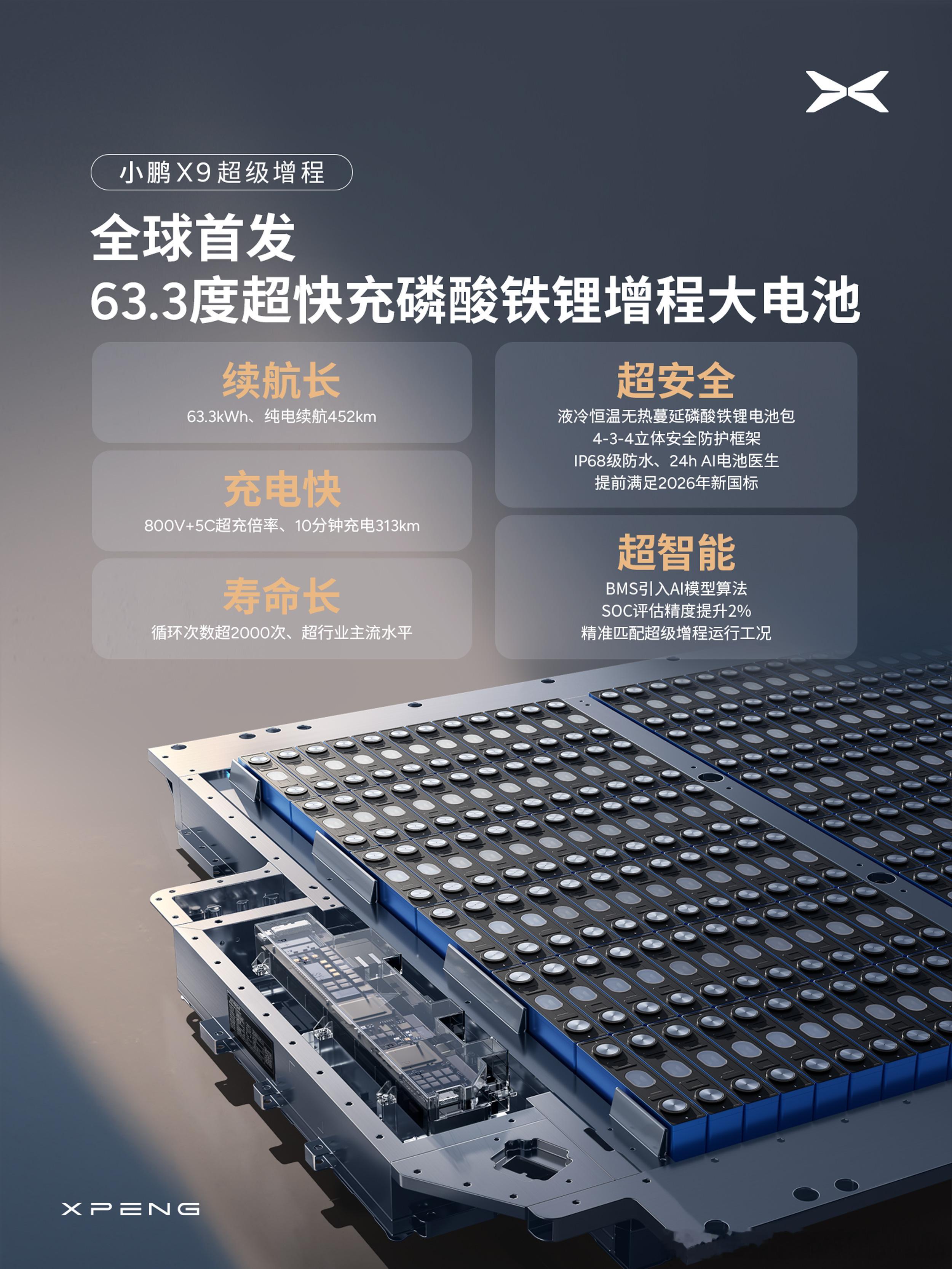 小鹏超级增程搭超快充磷酸铁锂大电池1602公里续航的小鹏X9超级增程来了