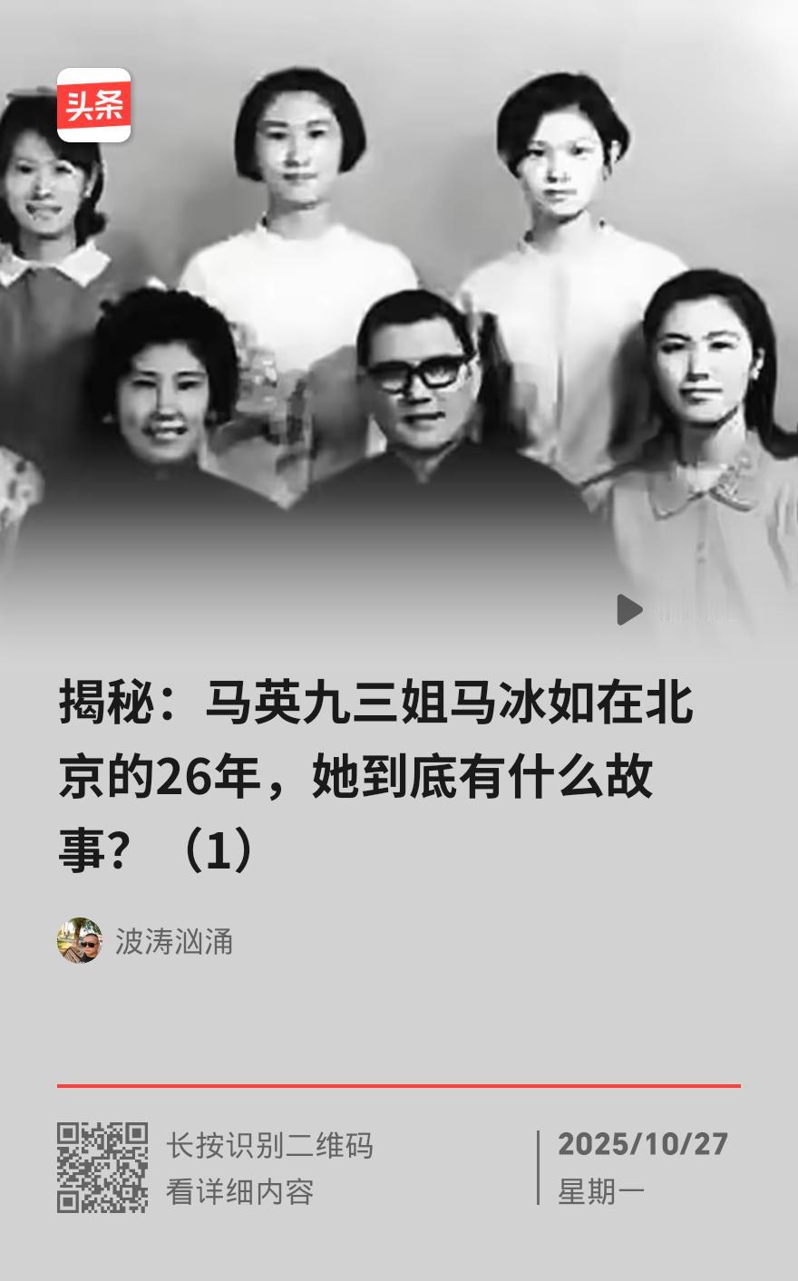 惊!马英九亲姐在北京"隐身"26年,挤公交砍价买菜,真实身份藏不住了 北京胡同里有个超接地气的"马阿姨",挤公交、早市砍价样样在行,街坊们谁也没料到,这阿姨竟是马英九的亲姐姐马冰如! 她在这儿一住就是26年,没司机没保镖,更没豪宅,活得比普通人还烟火气。清晨揣着布袋子扎早市,买黄瓜能跟摊主磨三分钟砍价,临走还得要两根香菜;傍晚坐公交去超市,见着老人立马让座,一口台湾腔混着北京话,特亲切。 身份曝光纯属意外,社区中秋晚会上她唱了首《月亮代表我的心》,被曾在台湾工作的老人认出。邻居们都惊掉下巴,直呼"看着就是热心阿姨,哪像大人物家属"。 其实她来北京是圆年轻时的梦,就想抛开"马家人"标签过日子。教邻居做蚵仔煎,自己学做炸酱面,逢年过节和街坊互换特产,还主动当两岸青年交流志愿者,说"咱们都是中国人,一家人得常来往"。 这26年,她用烟火日常证明,最真的两岸情,从来不是喊口号,而是藏在一把菜、一碗面的暖心相处里。马英九 马英九亲姐姐