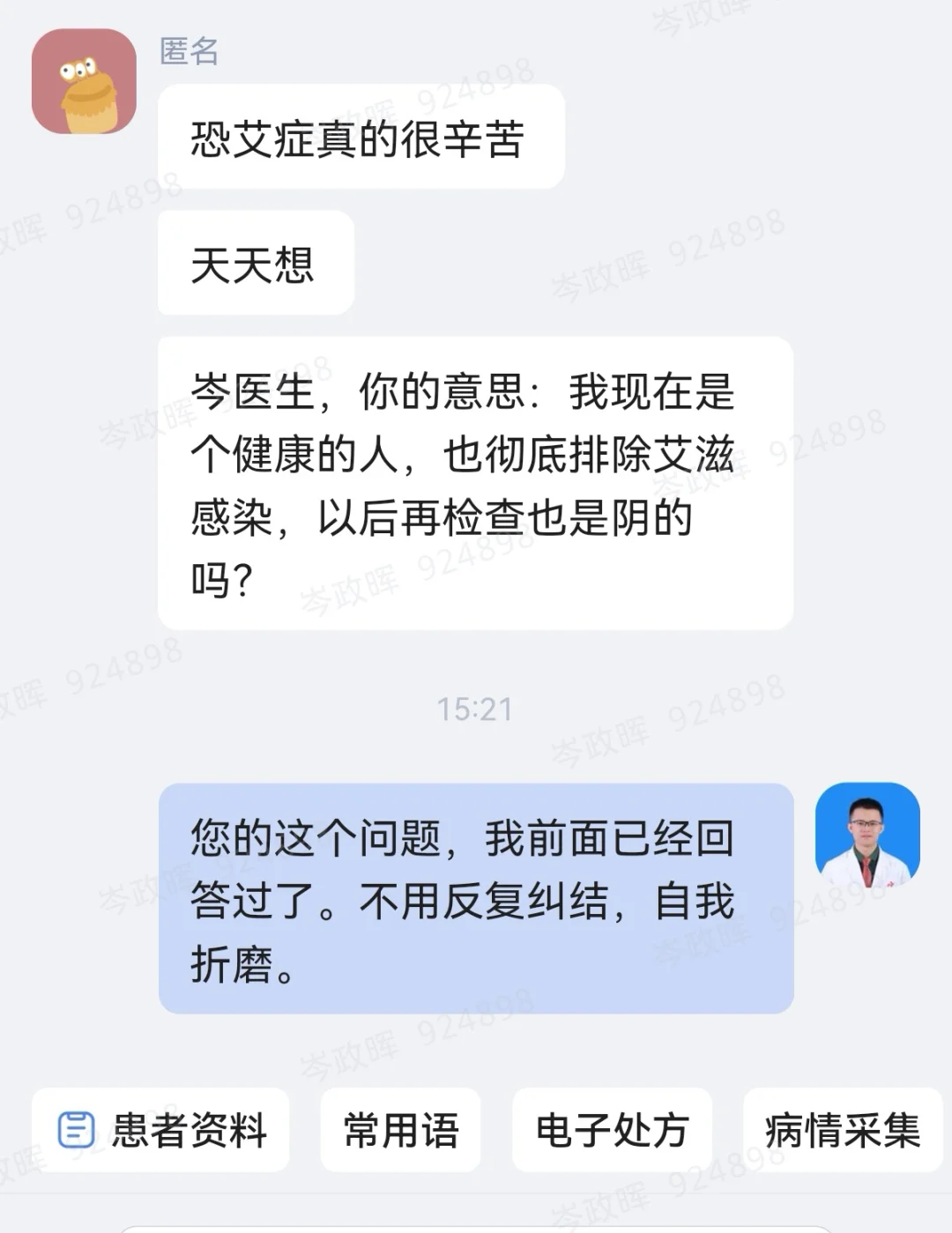 对艾滋病的过度恐惧和焦虑,可能导致疑病症,将一些正常的生理现象或者轻微的不适错误的归因于艾滋病。