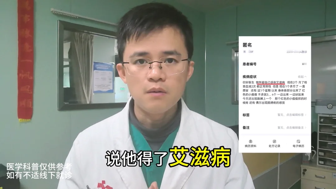 半年时间,反复感冒、皮疹、低热、肌肉关节酸痛、淋巴结大!但每次HIV检查都是阴性,所以他认为自己得的是“阴滋病”!这是啥?