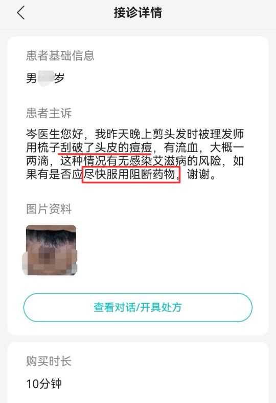 🤔对话: 一位大哥在理发店被梳子刮破痘痘,担心感染艾滋病,强烈要求吃...