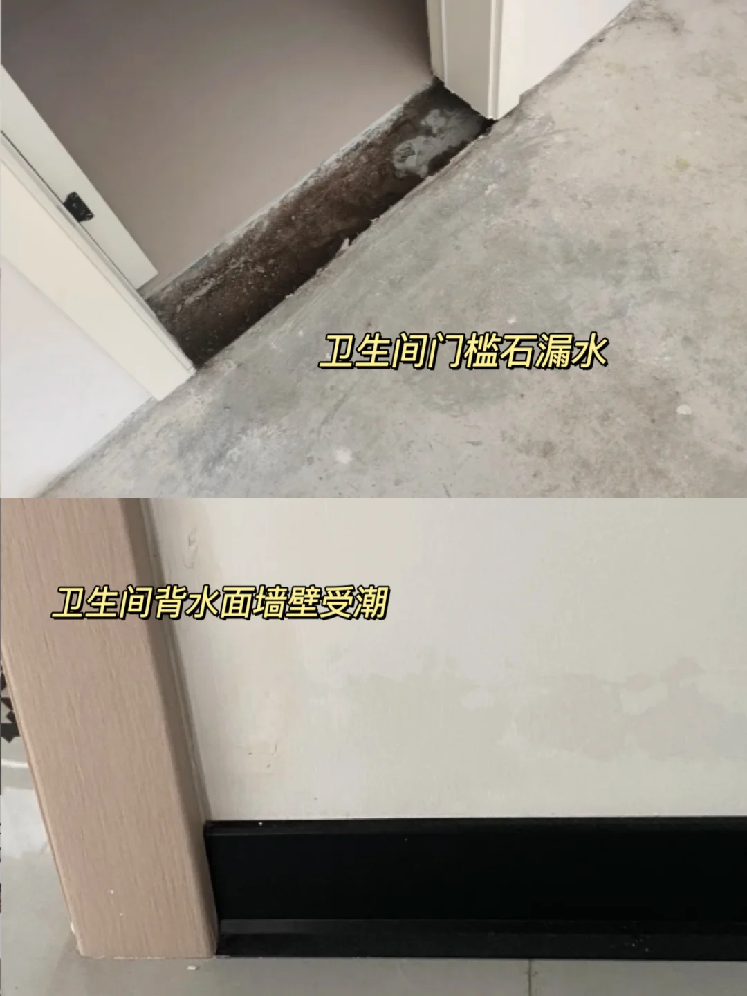 卫生间地面一旦积水,水就可能顺着门槛石的缝隙往外渗透。不仅卫生间门口的地板会被泡坏、发霉,就连门外两侧的墙面也会出现反碱、鼓包