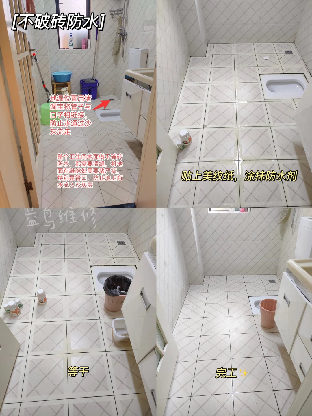 ⚠这种维修方式就是大家常说的 “不破砖防水”,相当于给卫生间地面加了一层保护 “雨衣”,不用拆砖也能阻止漏水