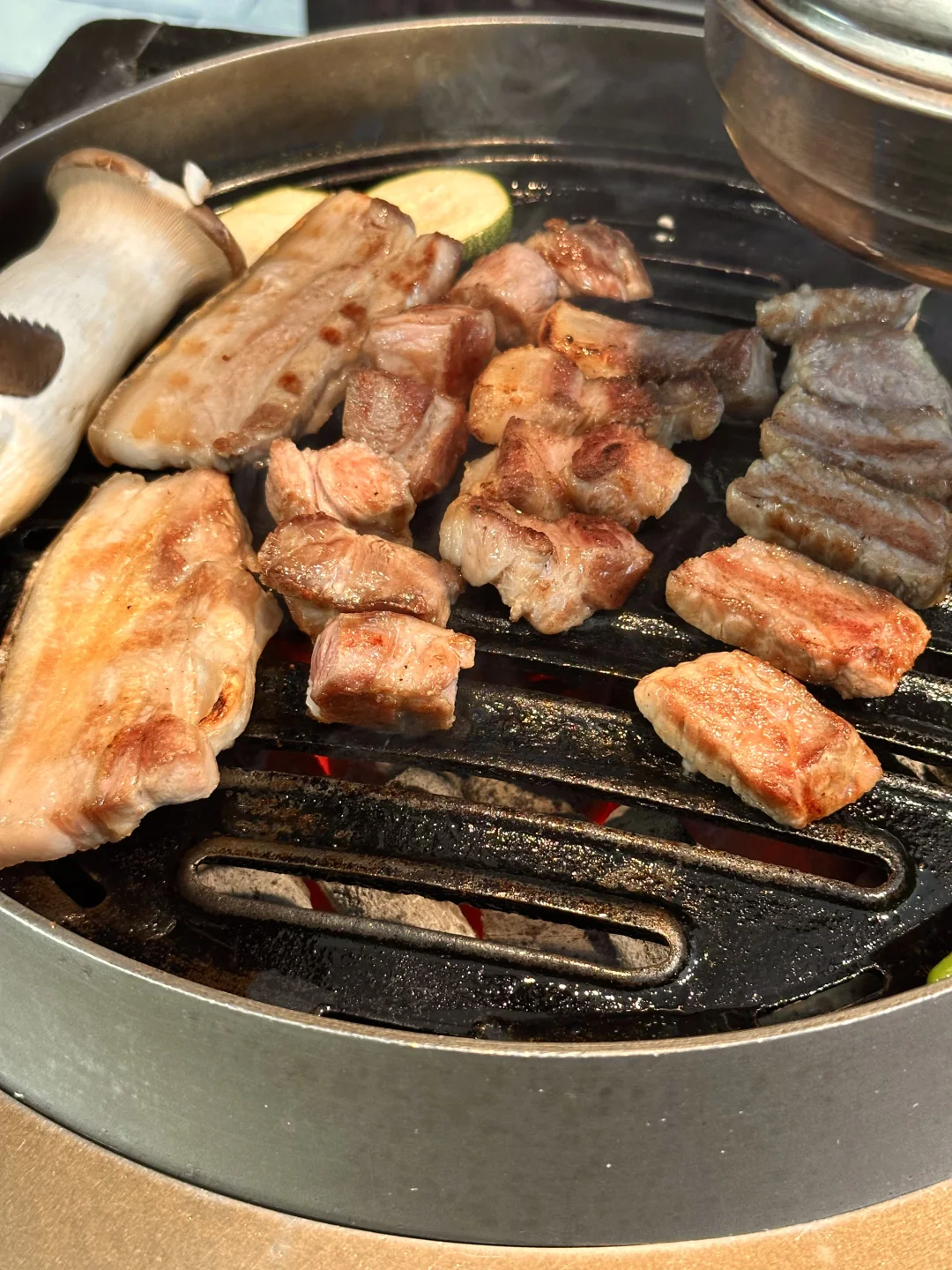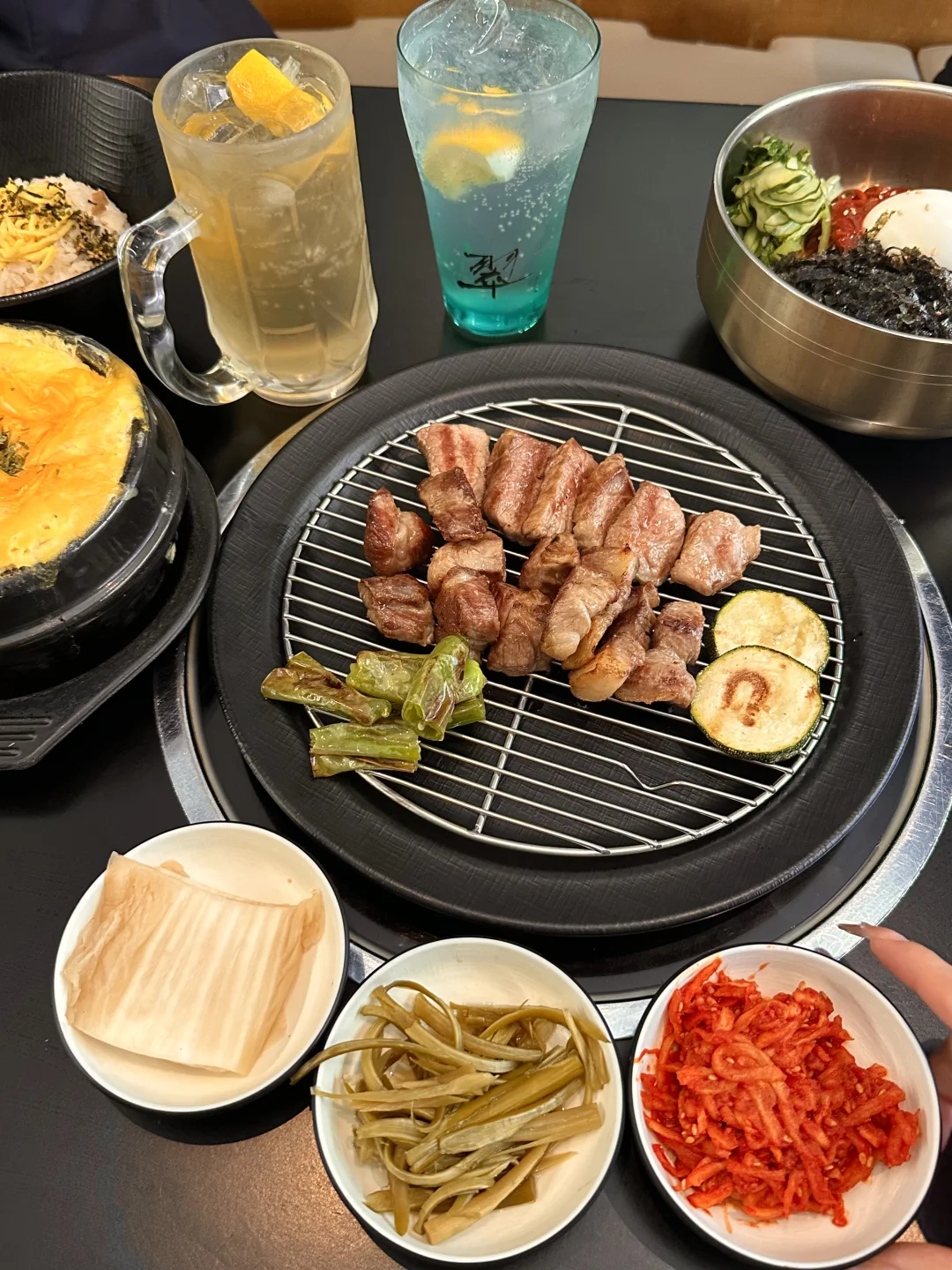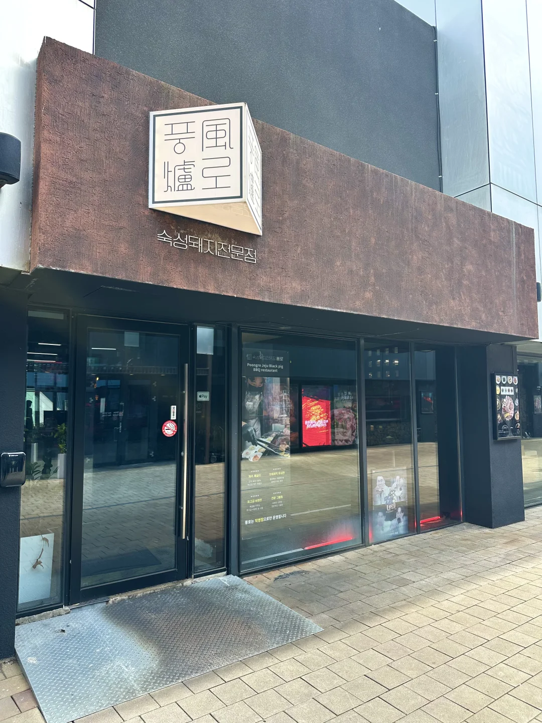 济州岛神话世界附近 在这玩了一圈之后 韩国姐姐推荐的 一进门全是韩国人就感觉来对地方了 他家是有类似切割证的 所以部分分的很明确 有好多部位他说只有他家有 服务员会帮忙烤 确实非常好吃 有些部位真的是瘦肉肥肉刚刚好 一点也不腻 原以为黑猪肉很大块 他家有的切的也很细致 份量也很足 鸡尾酒很好看 服务 口味都是好评 不来一次会后悔的程度 🏠店名: 风炉(神话世界店)