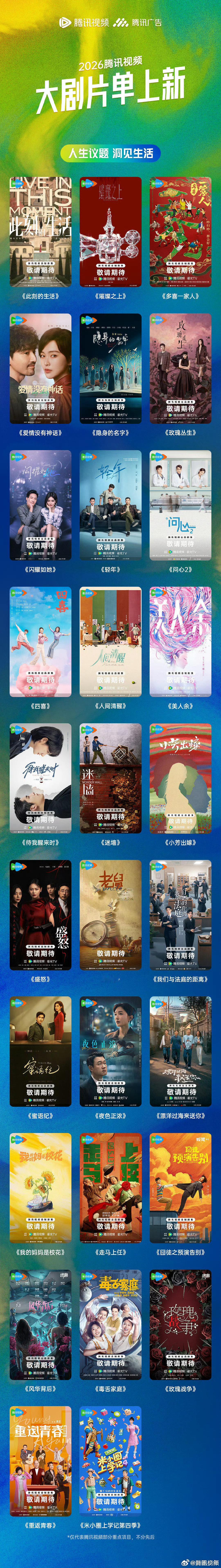 腾讯2026大剧片单一览腾讯2026大剧片单上新 腾讯2026大剧片单上新!历史、科幻、青春、现实题材全覆盖,腾讯视频独播,追剧清单锁死~