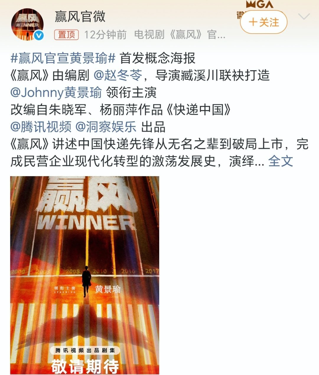 赢风官宣黄景瑜黄景瑜《赢风》单人官宣!!燥候这个无名赤子纵身规则荒蛮的商业丛林[
