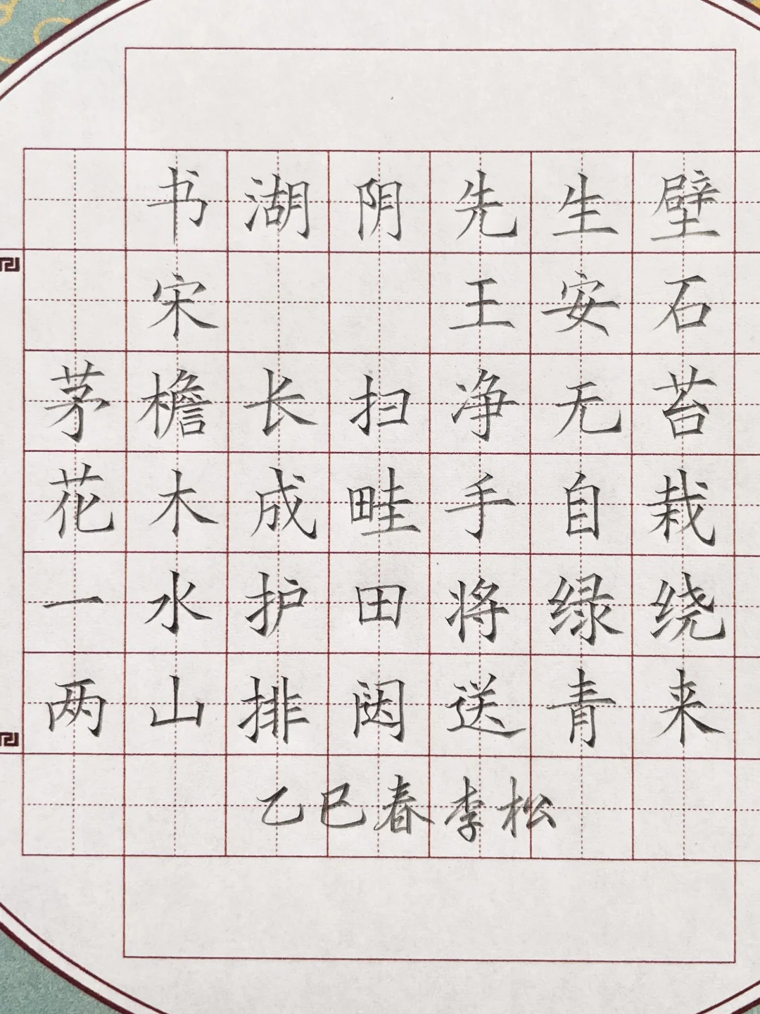 铅笔书写古诗词《书湖阴先生壁》
