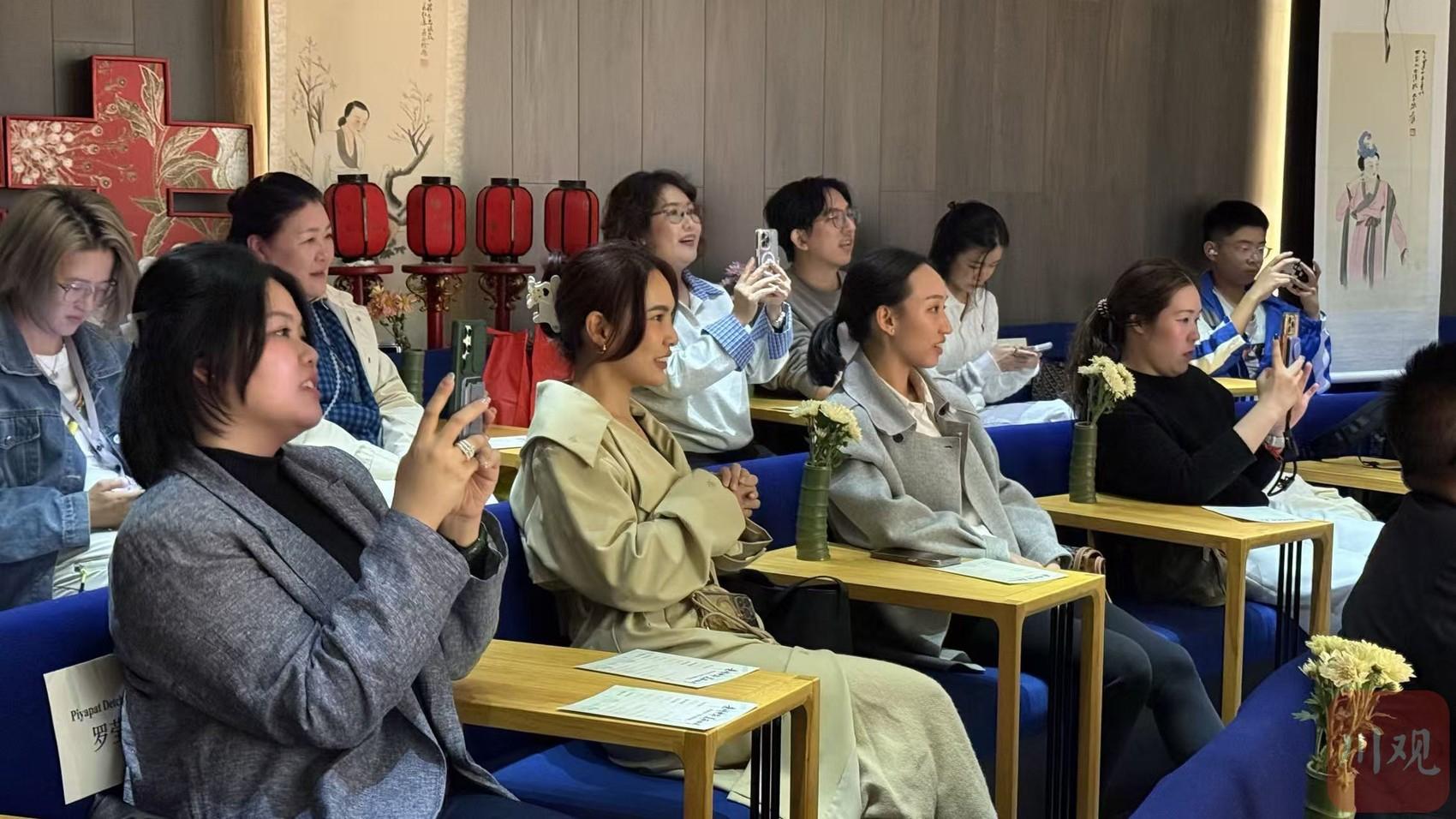 活动现场,充满巴蜀特色的文化节目轮番上演——当川剧演员瞬间变换脸谱,代表团成员纷纷举起手机记录,掌声与赞叹声此起彼伏;古琴曲《醉渔唱晚》奏响,现场静谧祥和,中泰青年沉浸于中华传统文化的深厚底蕴。互动环节中,中泰青年围绕文化、生活等话题畅聊,最后代表团成员献上泰国经典歌曲《水灯节之歌》,欢快的旋律为文化交流环节画上圆满句号。
