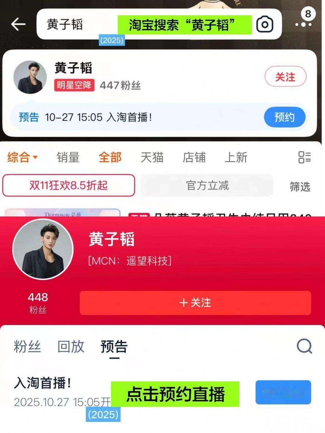 10月27日最值得参与的事,就是看黄子韬的淘宝直播首秀。现在上淘宝搜 “黄子韬” 预约直播,10 月 27 日看黄子韬入淘直播,直播间千份福袋 1 分钱送,新品免单不停抽!黄子韬淘宝直播首秀黄子韬来淘宝干大事儿。