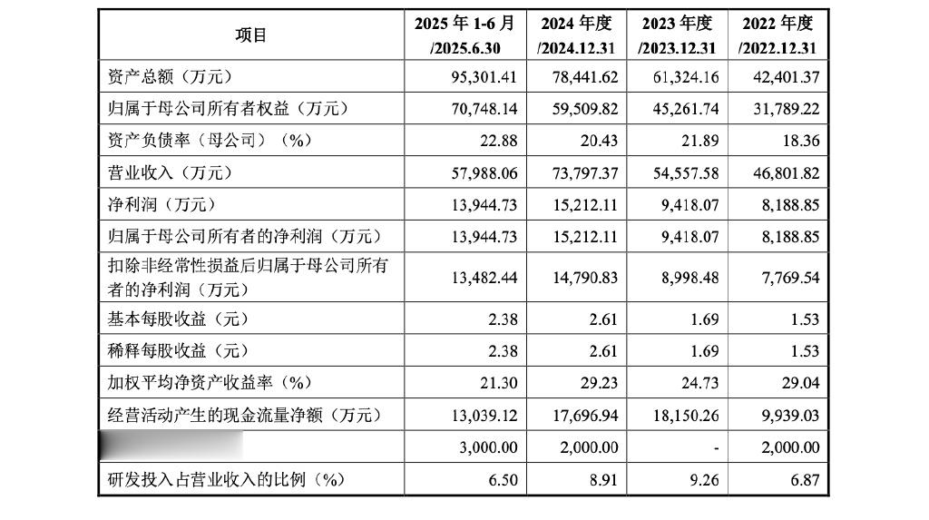 报告期内,好盈科技的营业收入分别约4.68亿、5.46亿、7.38亿、5.80亿元;净利润分别约8188.85万、9418.07万、1.52亿、1.39亿元;扣非归母净利润分别约7769.54万、8998.48万、1.48亿、1.35亿元。