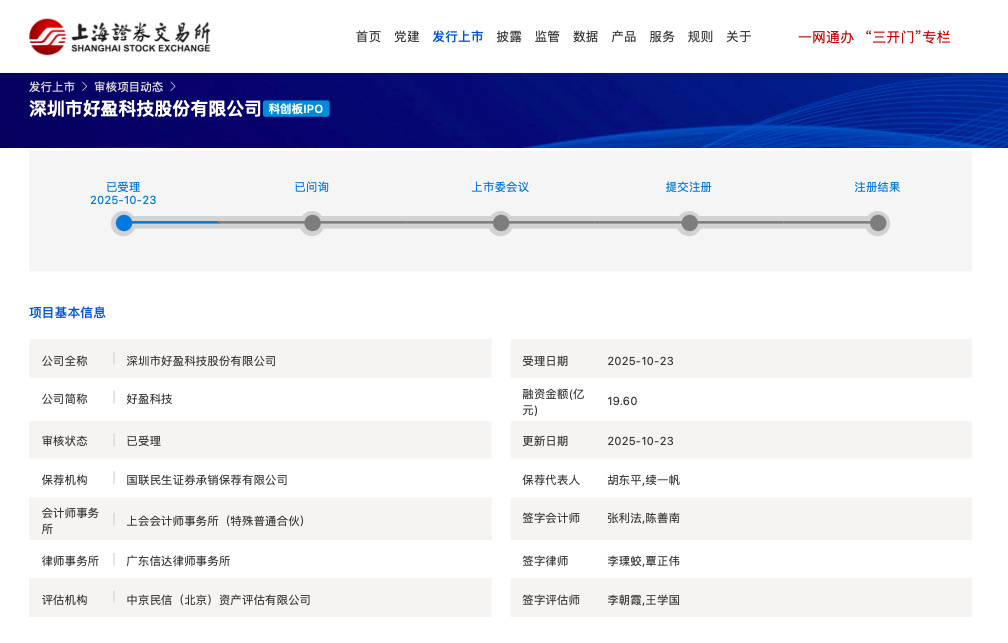 10月23日,无人机动力系统制造商深圳市好盈科技股份有限公司(下称:好盈科技)科创板IPO获上交所受理,保荐机构为国联民生证券。