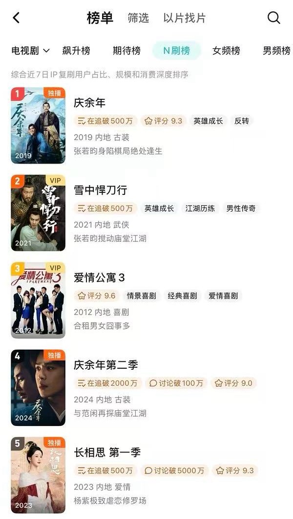 张若昀不愧是男频第一人❗️N刷榜单前5占3,《千里江山图》85花刘诗诗都给他做配