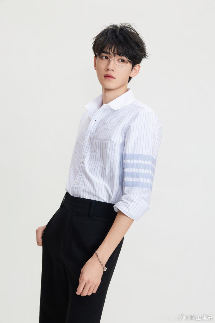 宋亚轩条纹衬衫银框眼镜高智感宋亚轩白色系库存 宋亚轩白色系库存,条纹衬衫银框眼镜