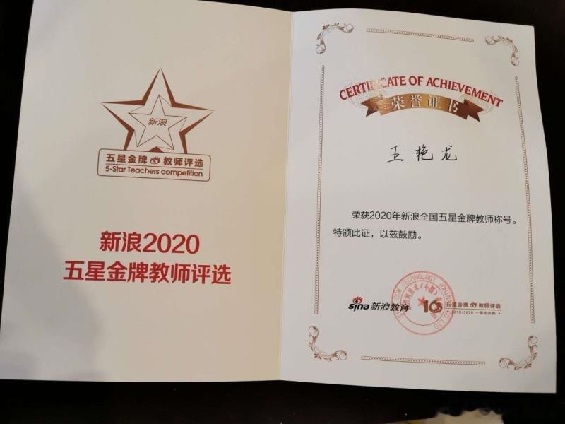 昨天在京城度过了从教以来最难忘的一个教师节,得到了一份珍贵的厚礼:获得了新浪全国五星金牌教师称号!