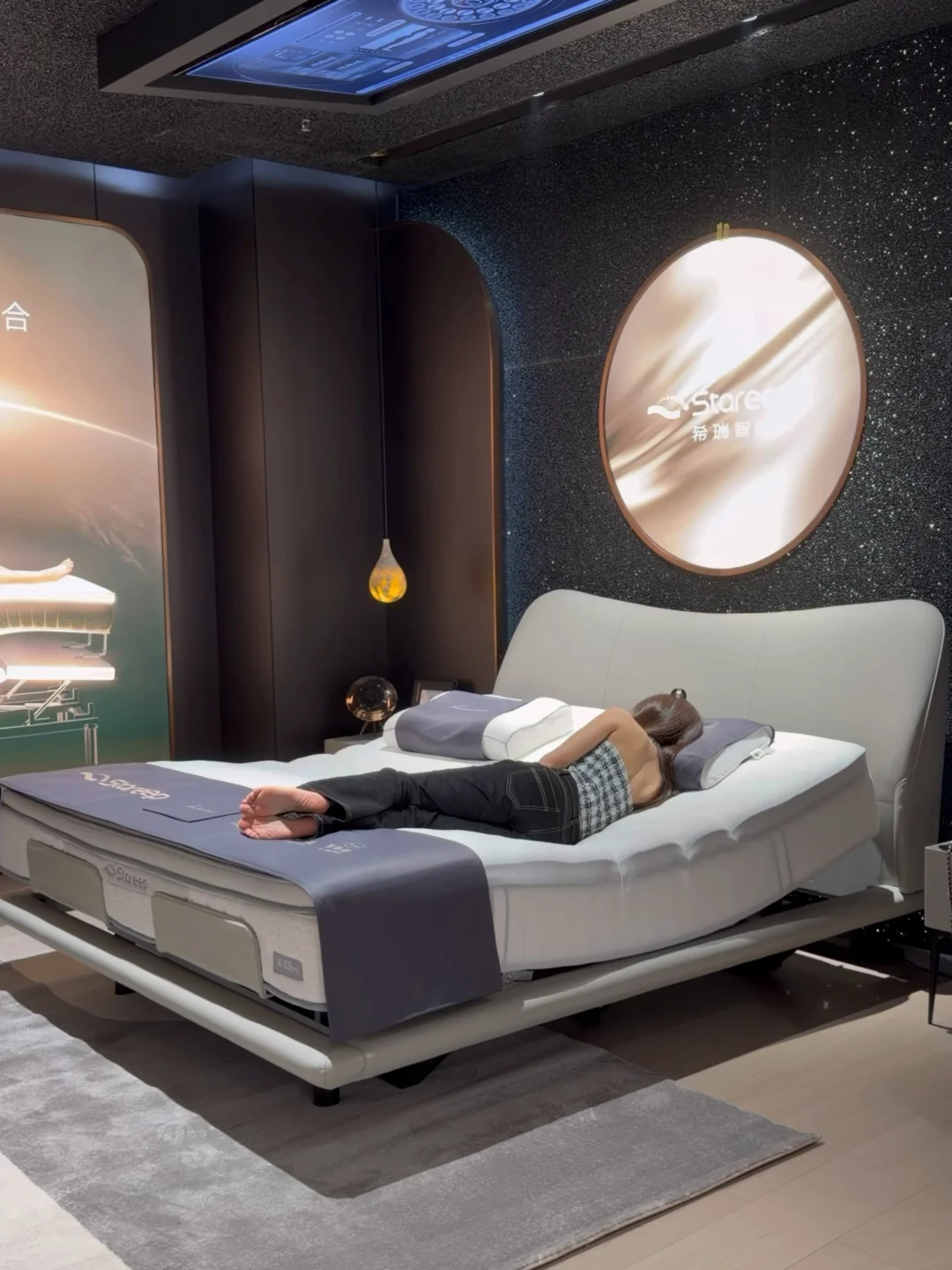 今天冲希瑞智能床体验店本来就想随便试试,结果!往床上一躺直接被“拿捏”——16区自适应调节,长眼睛似的👀,肩颈、腰背全给你托得明明白白,一点不悬空!✨