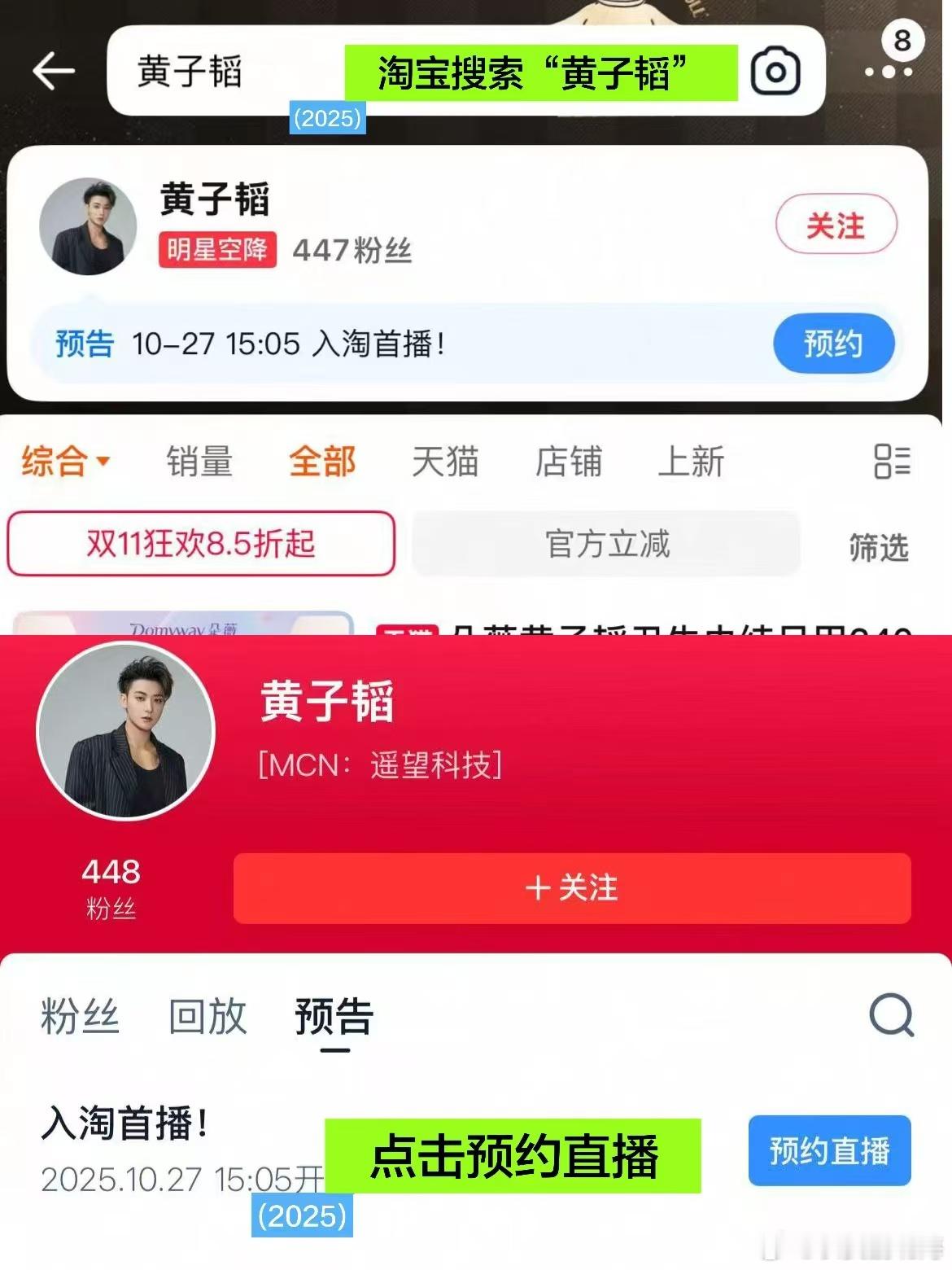 黄子韬淘宝直播首秀韬韬淘宝直播首秀要来啦!10月27日锁定直播间,千份福袋1分钱抢,新品免单抽不停,福利诚意拉满。现在上淘宝搜“黄子韬”就能预约~黄子韬来淘宝干大事儿