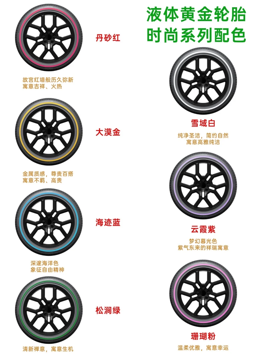 👉🏻这次赛轮液体黄金轮胎时尚系列有大漠金、丹砂红、雪域白等 7 种时尚颜色,🔷都是用了专门的防褪色工艺,保持颜色持久如新;胎侧采用砚黑工艺,🌟看起来和摸起来都很有质感,拍照太出片啦~想买轮胎的姐妹,强烈建议去看看赛轮液体黄金轮胎时尚系列,颜值高又实用!✔️