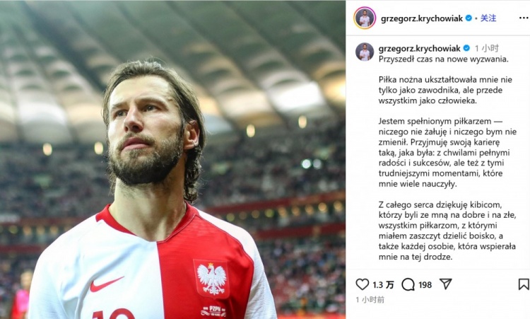 直播吧10月27日讯35岁的波兰后腰克里乔维亚克在今日通过社媒发文,正式宣布退役。