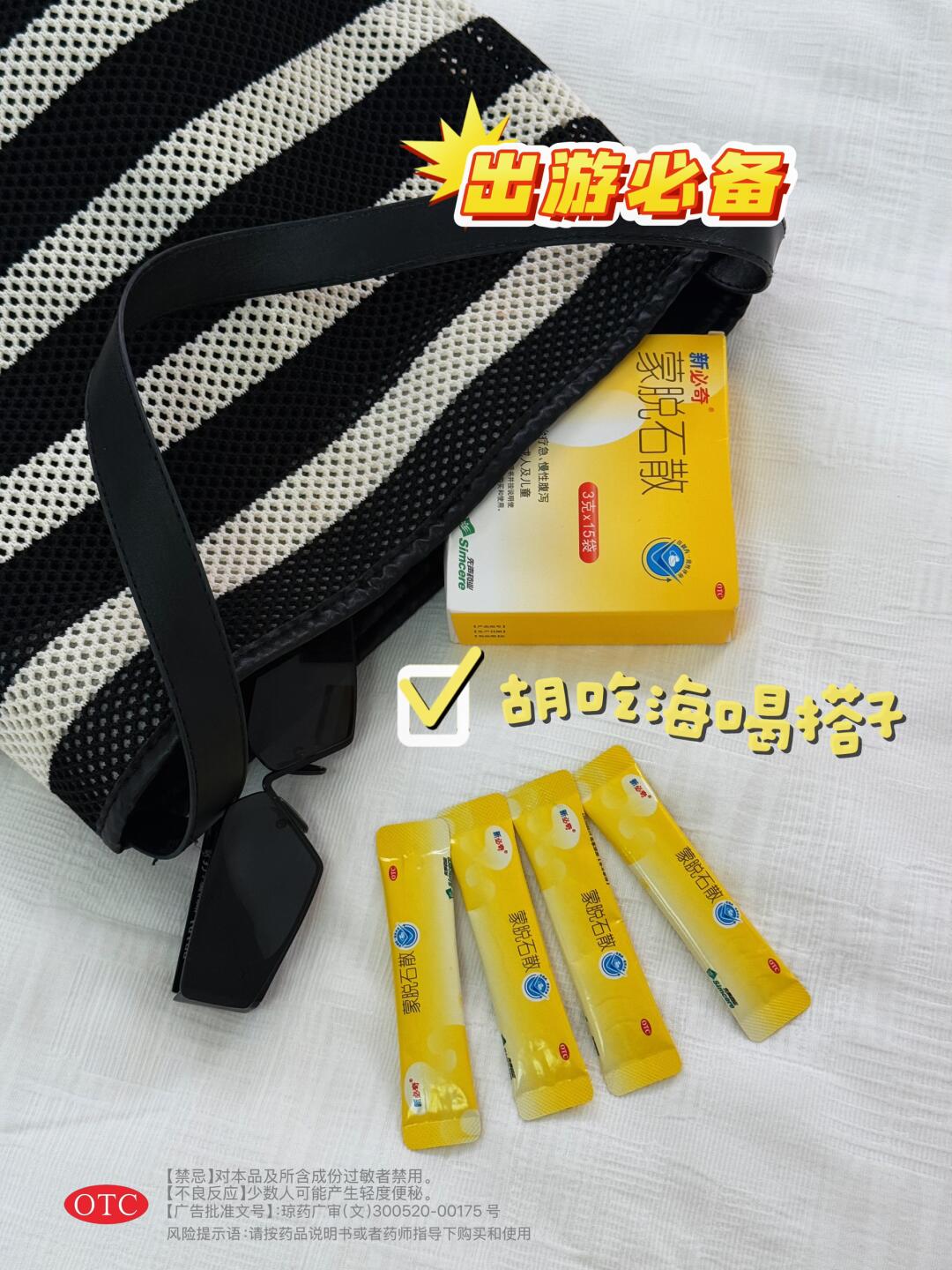 👉 划重点!⚠️还好出发前在包里塞了新必奇蒙脱石散,独立小包装超便携,揣进包里随时救场!天然蒙脱石原料,对肠胃温和还能保护黏膜,大人小孩都能喝~ 口味还是甜甜的,在万宁吃的不舒服导致拉肚子,赶紧用温水冲了一包(一定要用温水冲泡开)