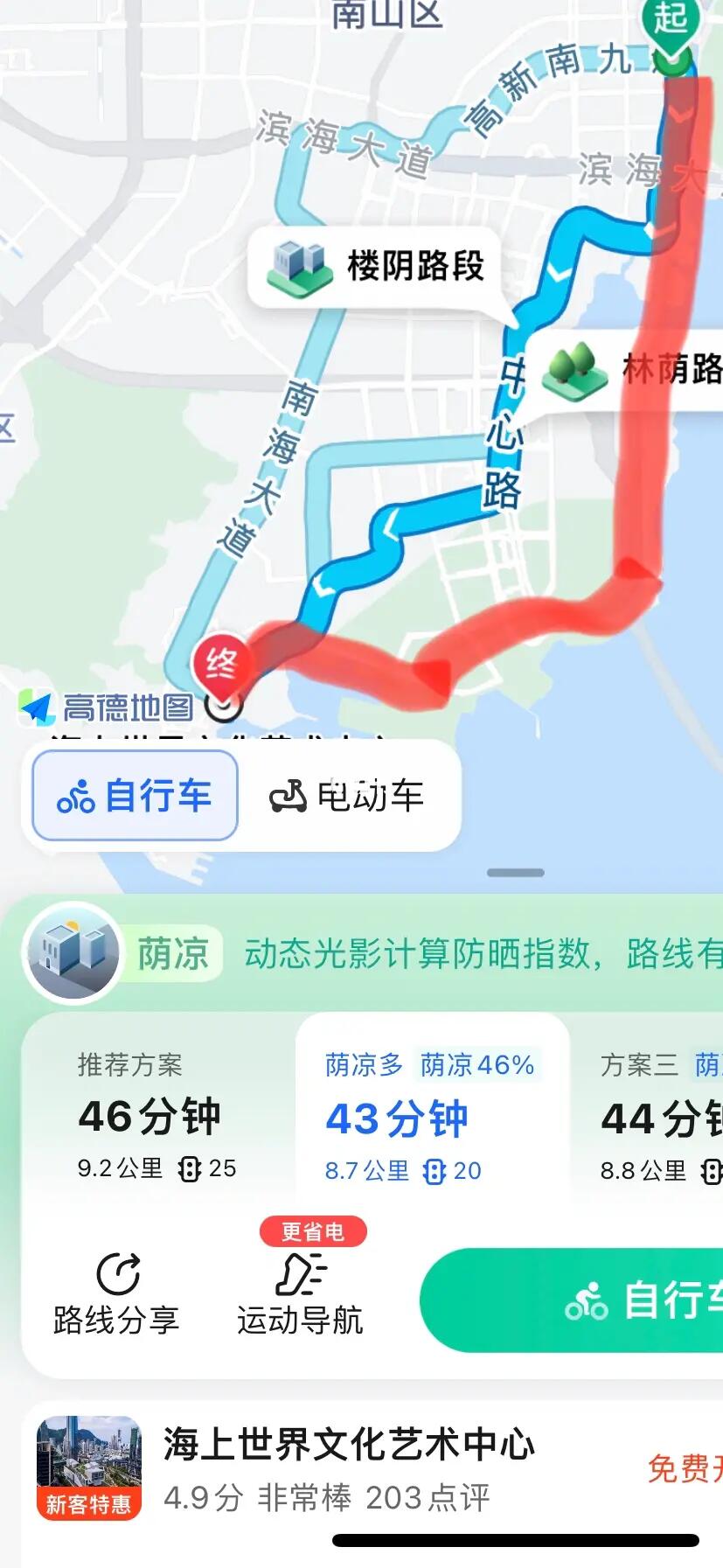直接骑行往蛇口方向