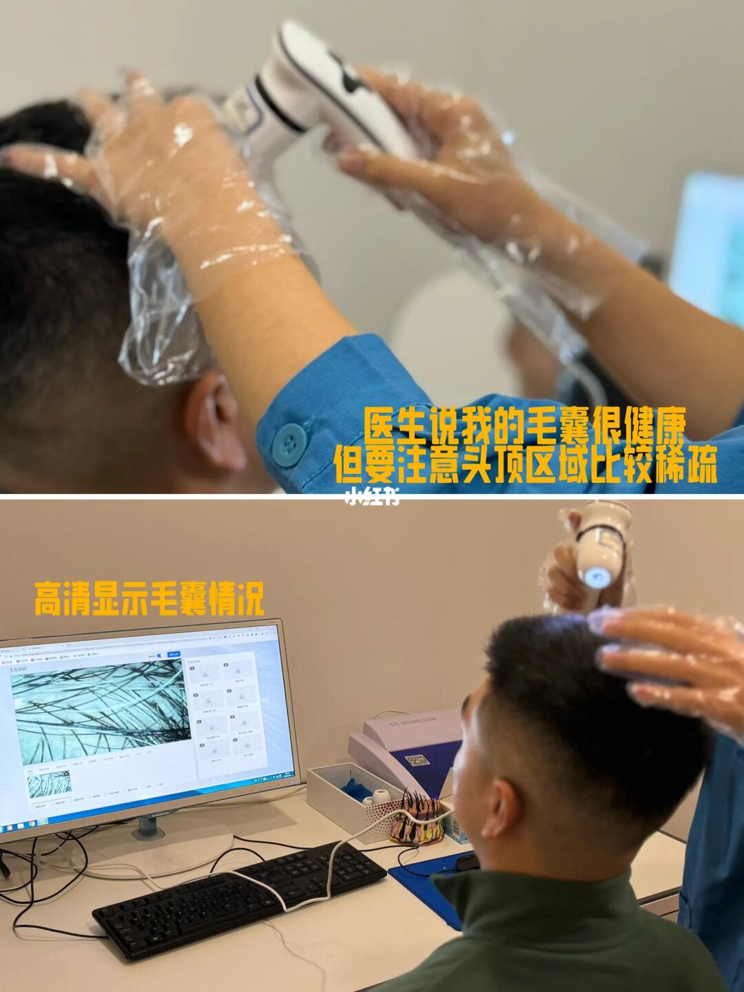 2️⃣另外能同时还要用仪器来清楚地看到你的毛囊那个状态是否健康是否有发炎,或者是哪个部位会比较严重,这样的话就可以放大了去看到你的毛囊的问题.