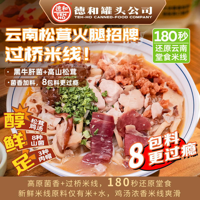 德和是云南本地的老字号品牌,融入云南各地各式的米线风味,用料扎实、地道。煮出来的米线口感接近堂食,连本地人都喜欢吃。