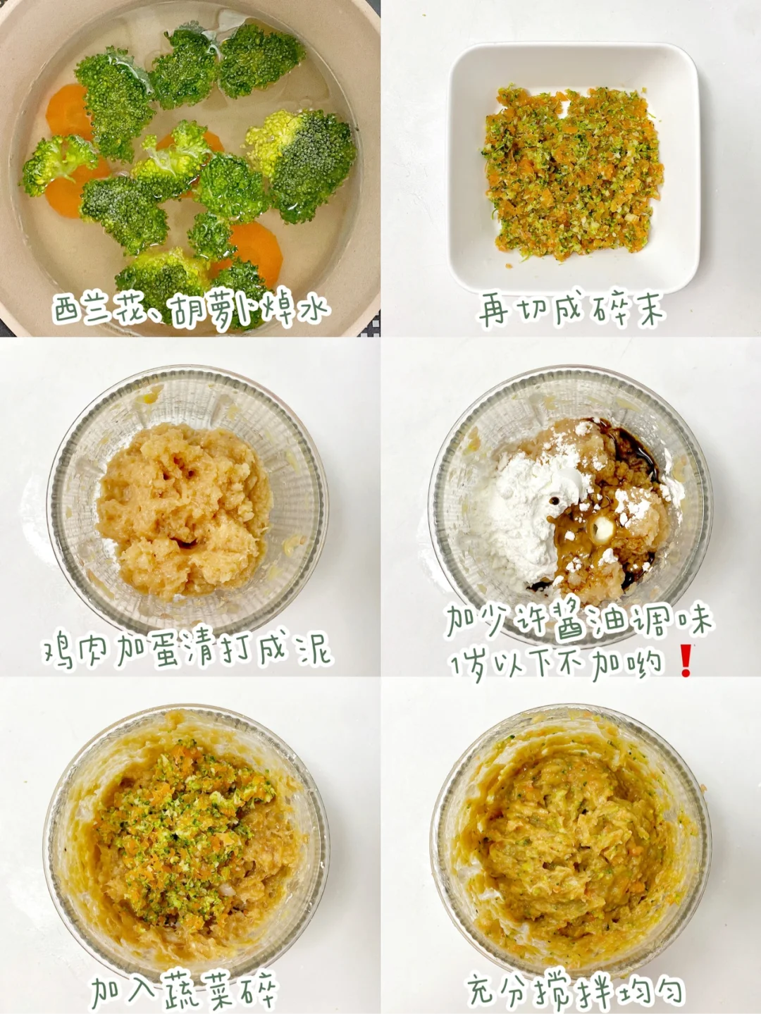 1⃣️西兰花胡萝卜焯水切碎备用。