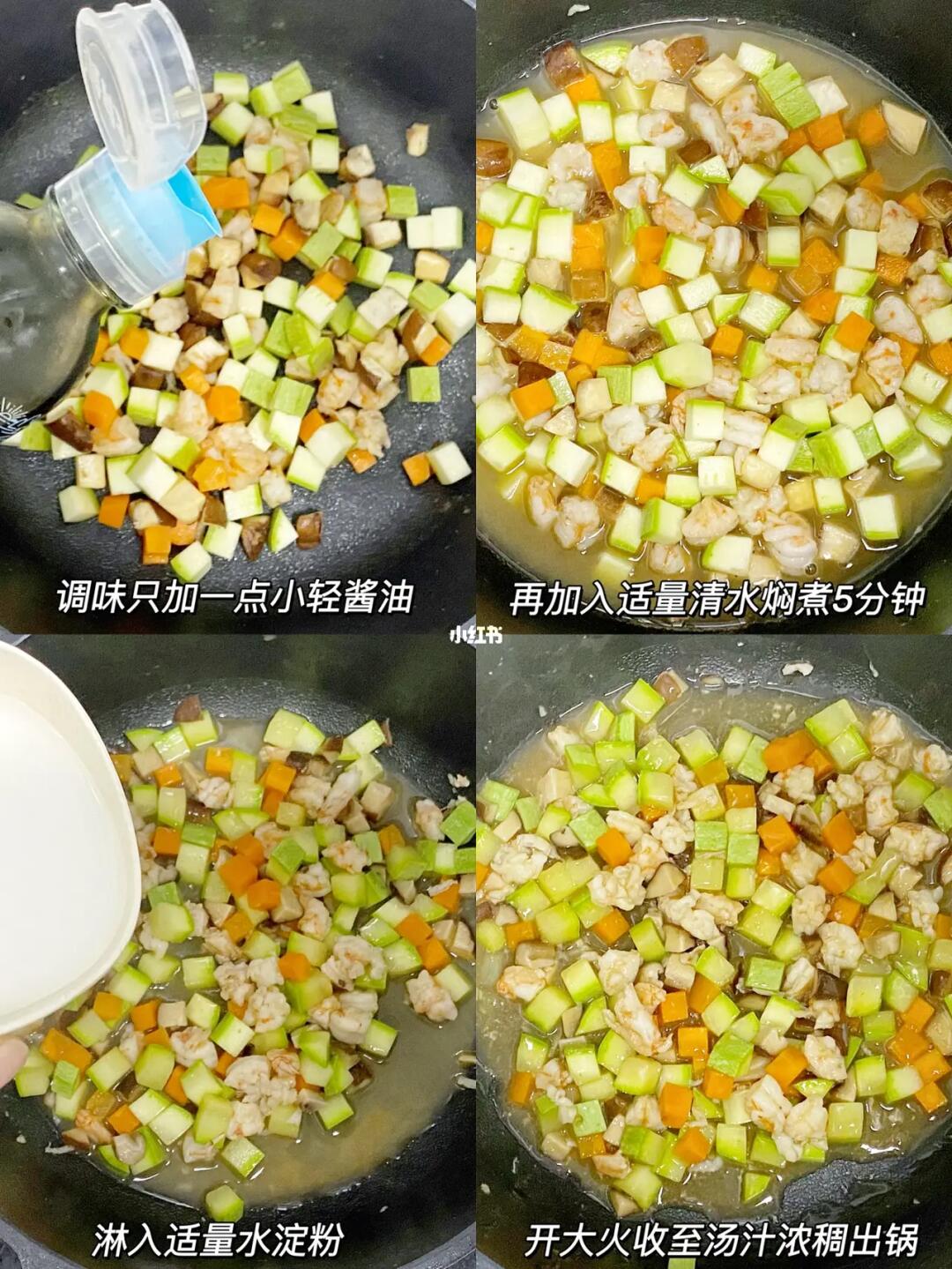 🌈西葫芦含有丰富的营养物质,口感软嫩又多汁。鲜虾蛋白质含量高,搭配在一起鲜美又好吃,浇在香喷喷的大米饭上,宝宝也是分分钟光盘的节奏。