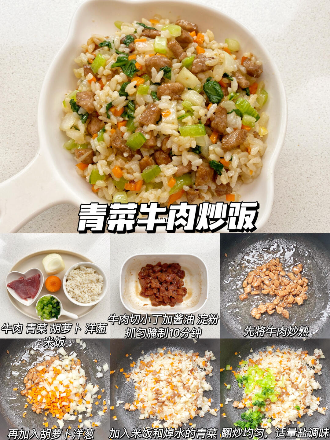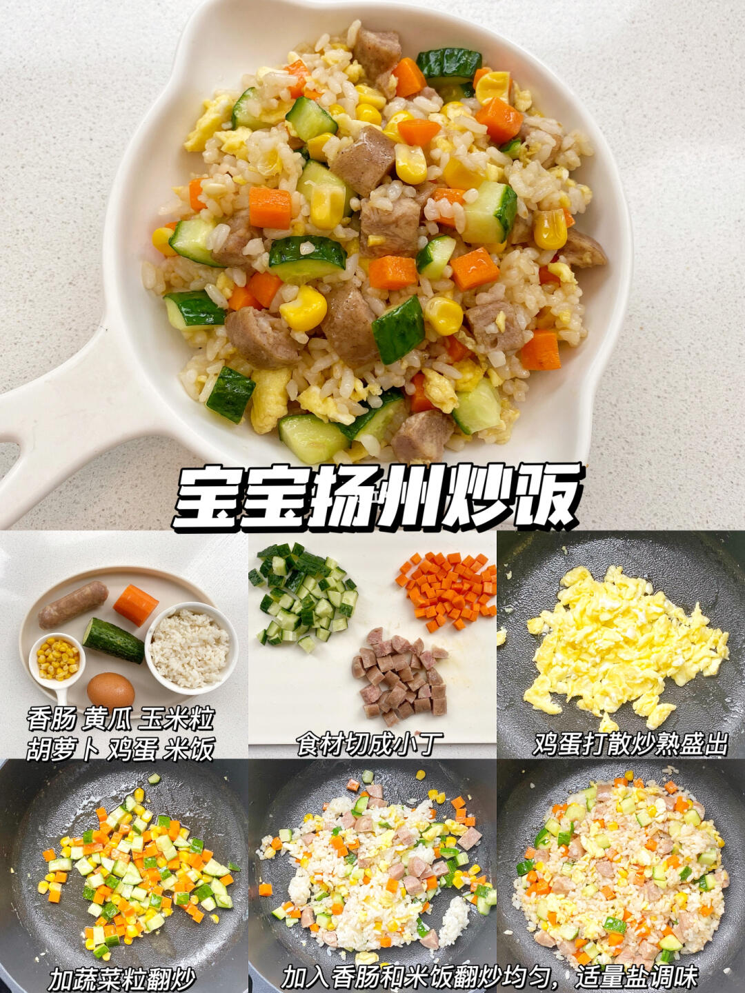 🌟炒饭比较适合12个月以上的宝宝,蔬菜尽量搭配的丰富一些,调味方面根据喜好加一点盐或酱油即可。